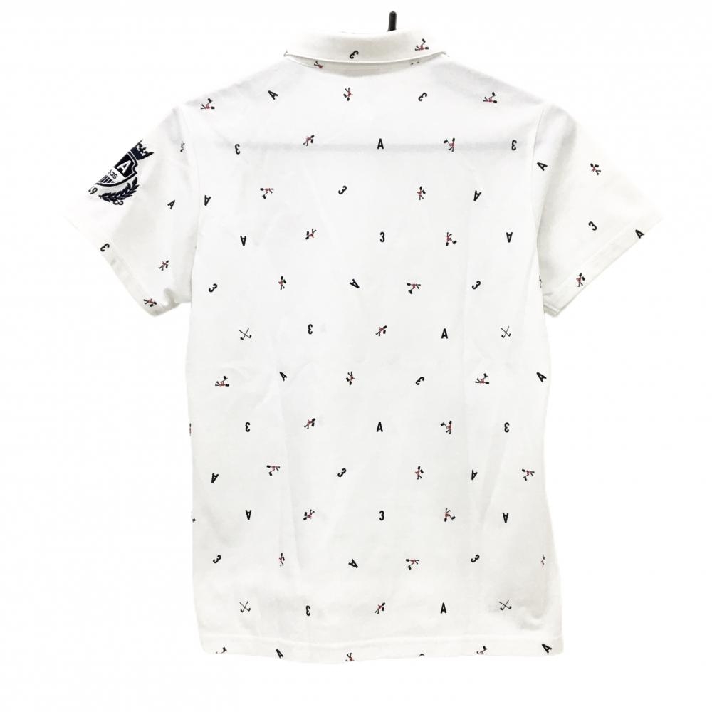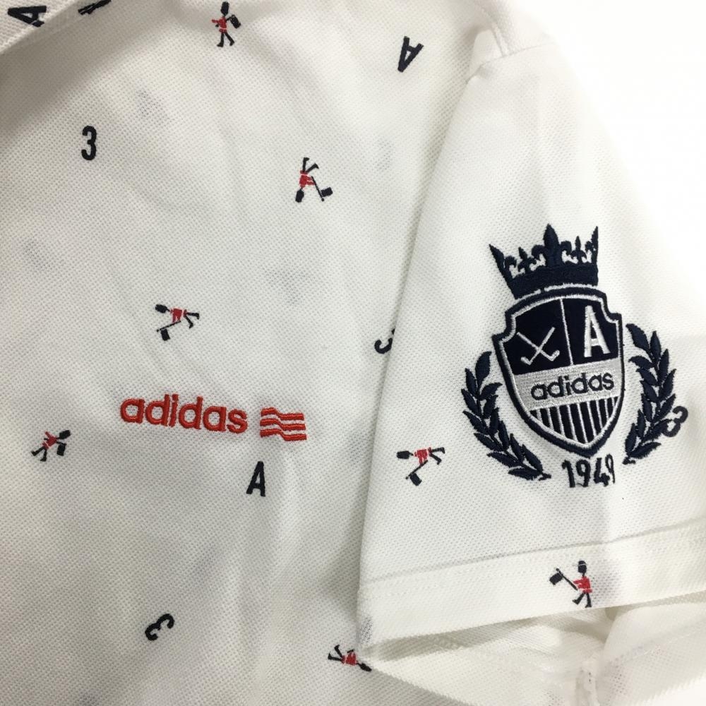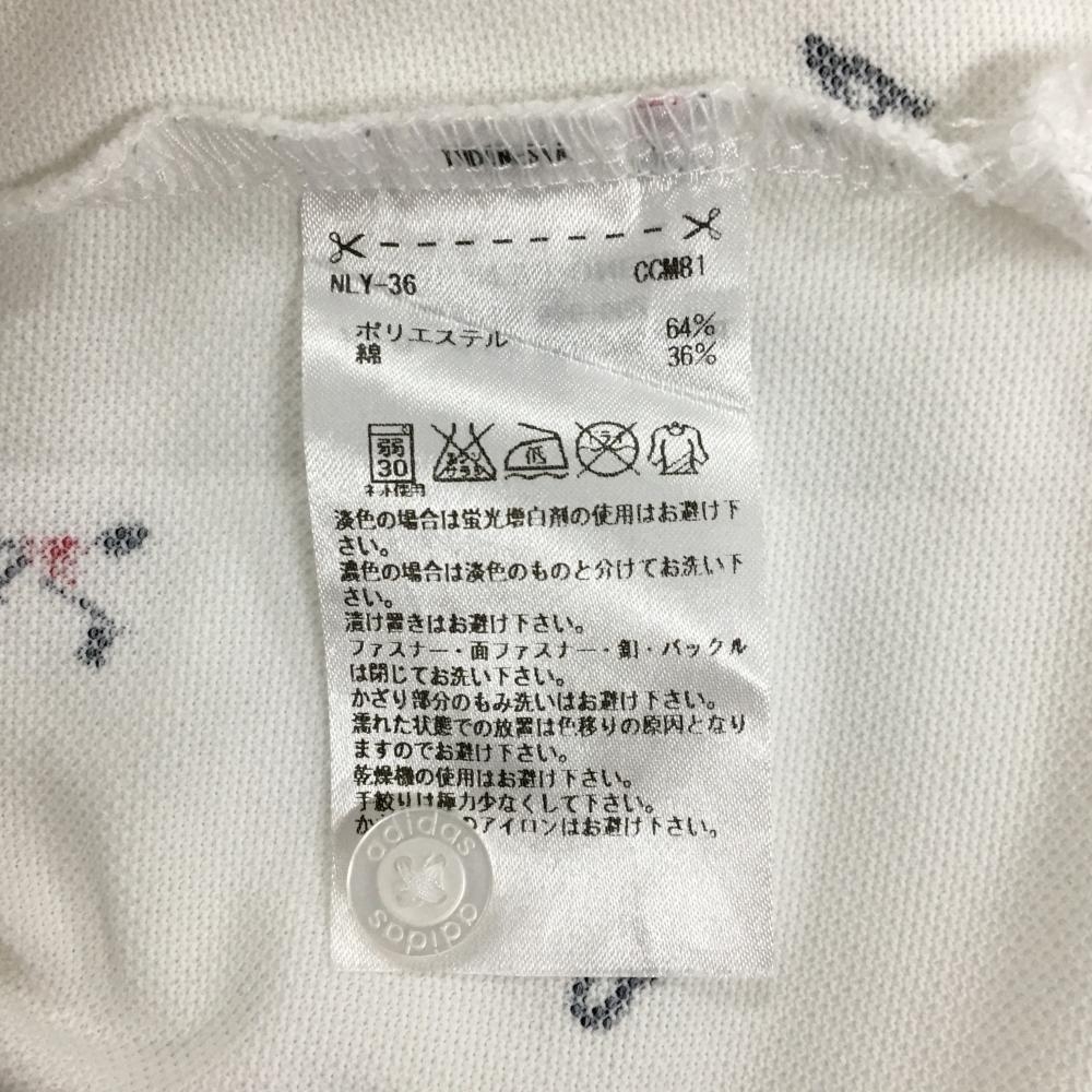 【超美品】アディダス 半袖ポロシャツ 白×ネイビー 総柄 レディース L/G ゴルフウェア adidas