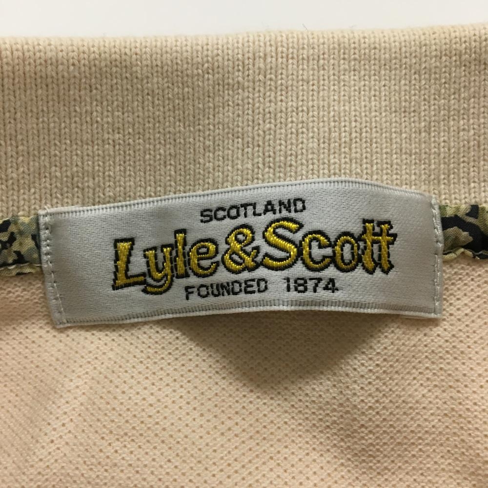 【美品】ライルアンドスコット 半袖ポロワンピース ライトベージュ ワッペン 共布ベルト花柄 レディース S ゴルフウェア LYLE&SCOTT
