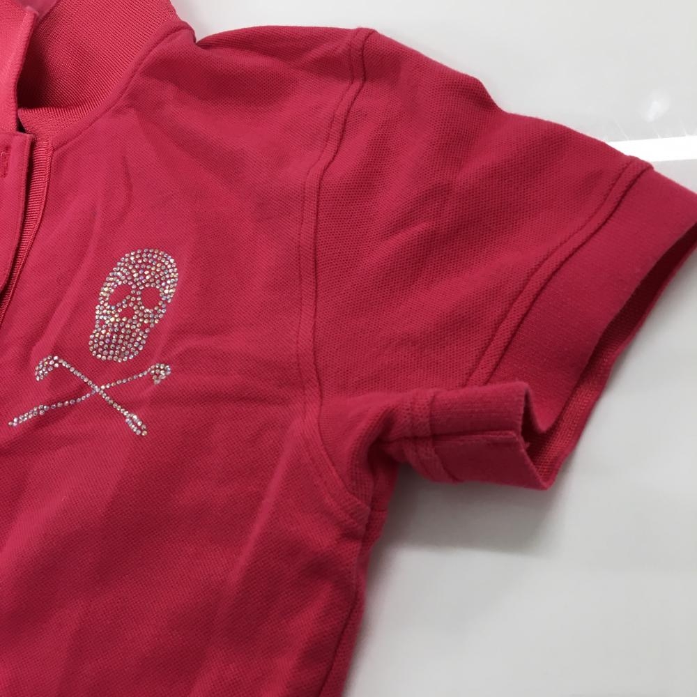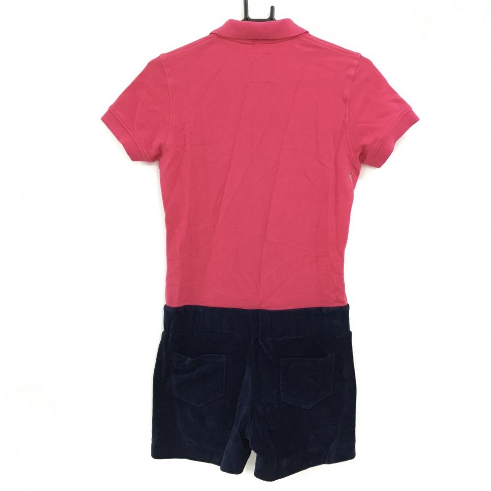 マークアンドロナ オールインワン レッド×ネイビー パンツ起毛 ラインストーンスカル レディース S ゴルフウェア MARK&LONA