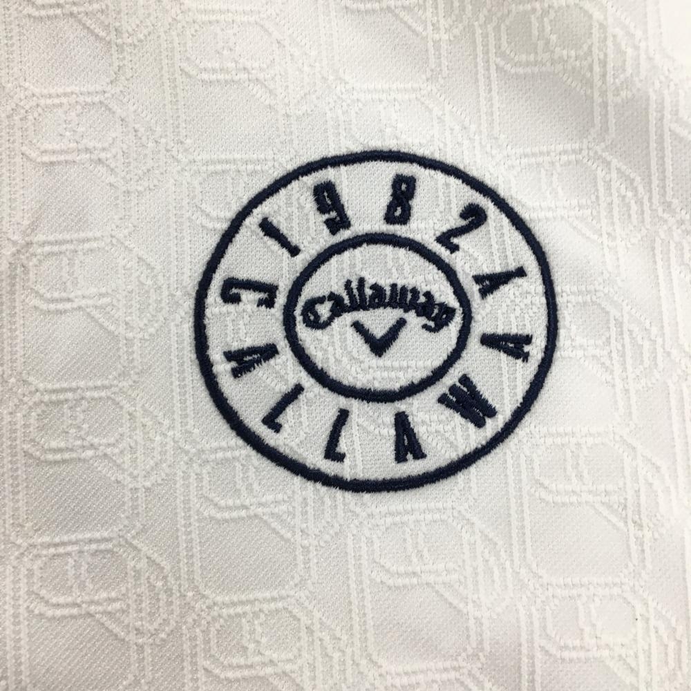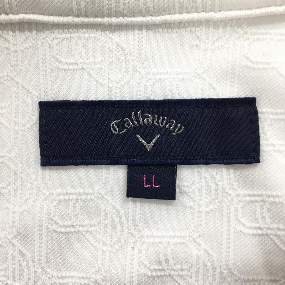 【美品】キャロウェイ 長袖ポロシャツ 白 総柄地模様 ロゴ刺しゅう レディース LL ゴルフウェア Callaway