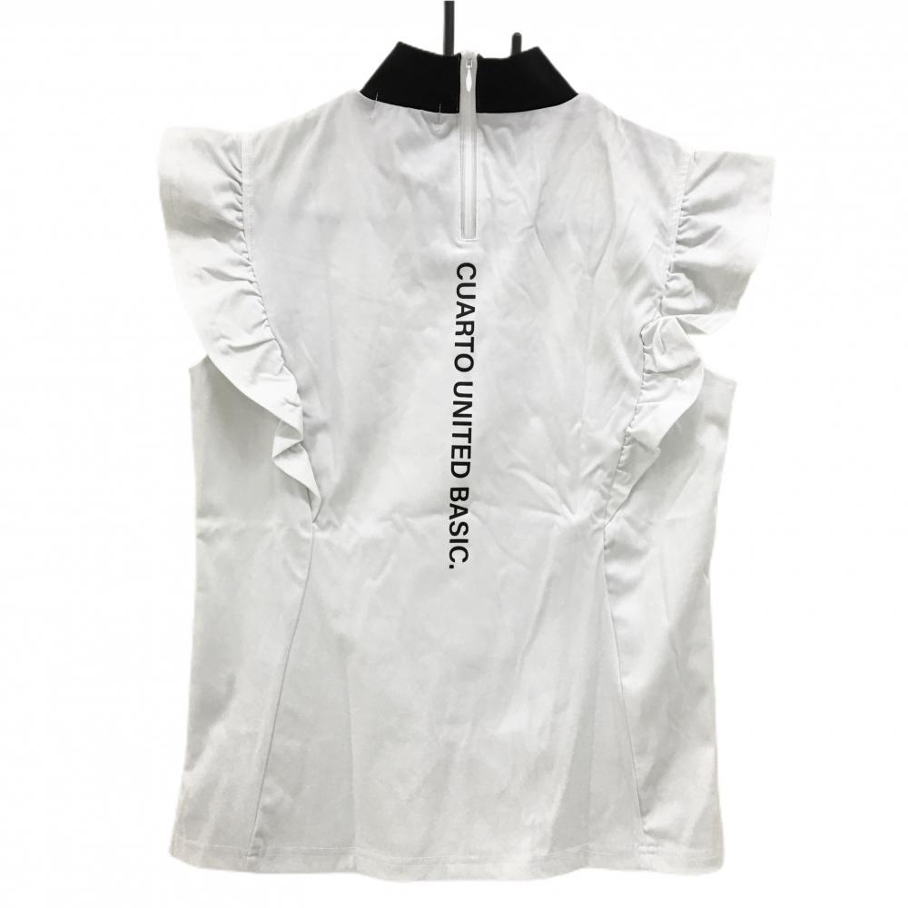 クアルトユナイテッドベーシック ノースリーブハイネックシャツ 白×黒 袖フリル CUBS. レディース S ゴルフウェア CUARTO UNITED