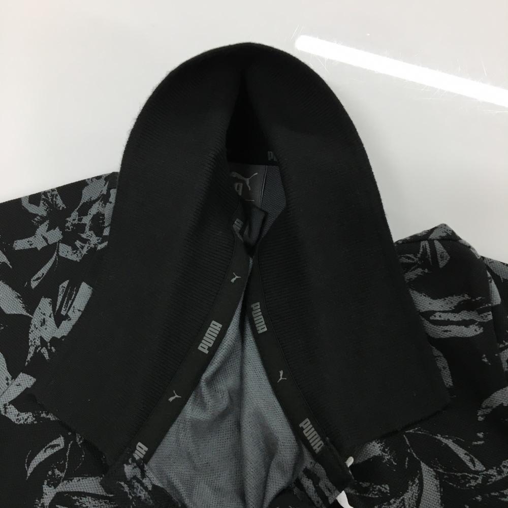 【美品】プーマ 半袖ポロシャツ 黒×グレー 総柄 レディース M ゴルフウェア PUMA
