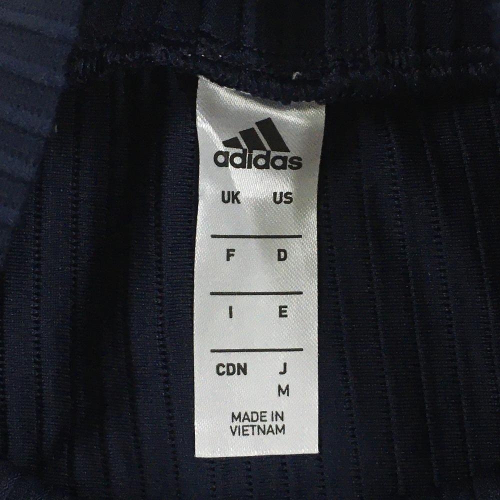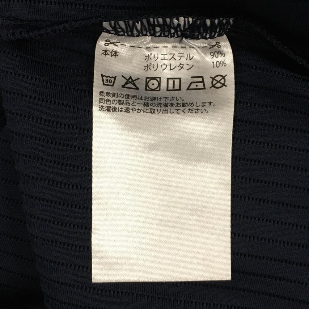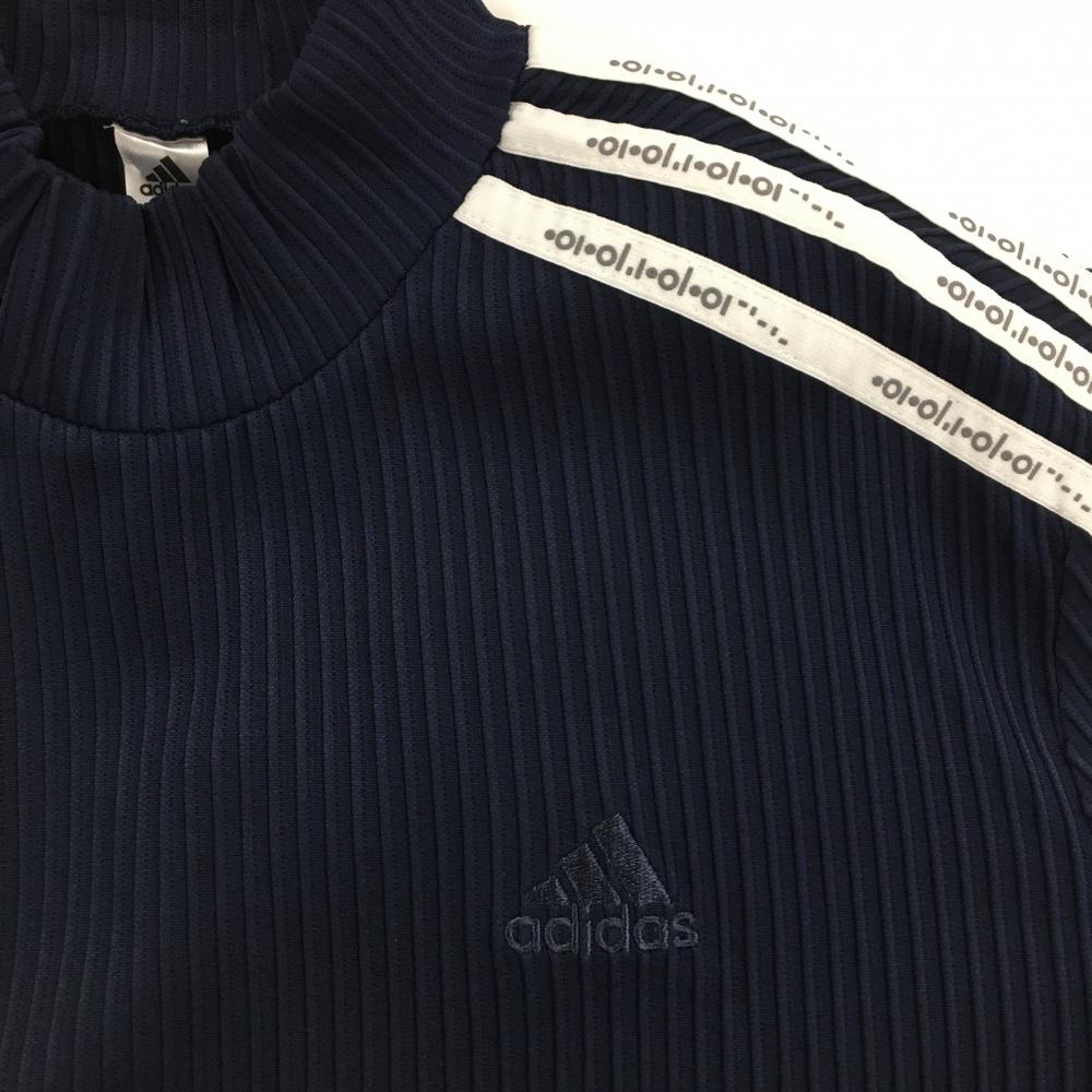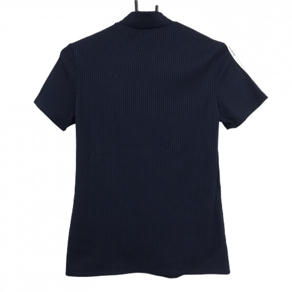 【超美品】アディダス 半袖ハイネックシャツ ネイビー ストライプ地模様 肩3ライン レディース M ゴルフウェア adidas
