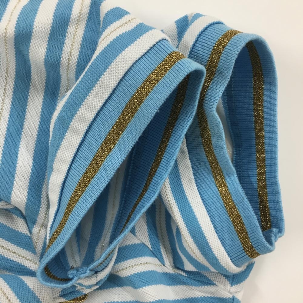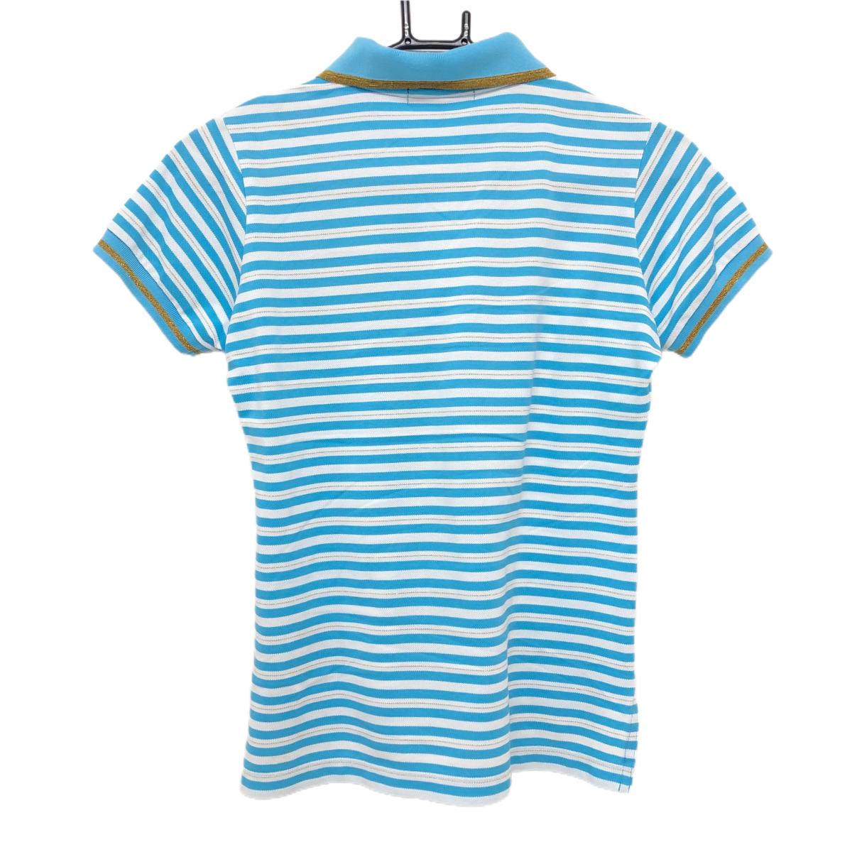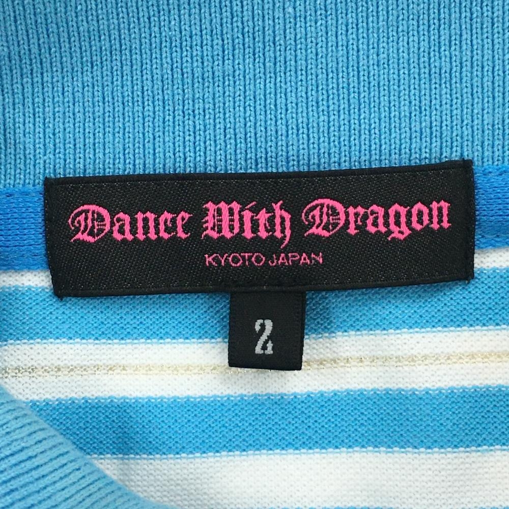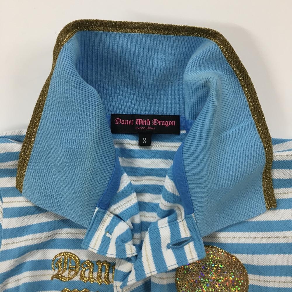 ダンスウィズドラゴン 半袖ポロシャツ ライトブルー×白 ボーダー スパンコールスカル レディース 2(M) ゴルフウェア Dance With Dragon