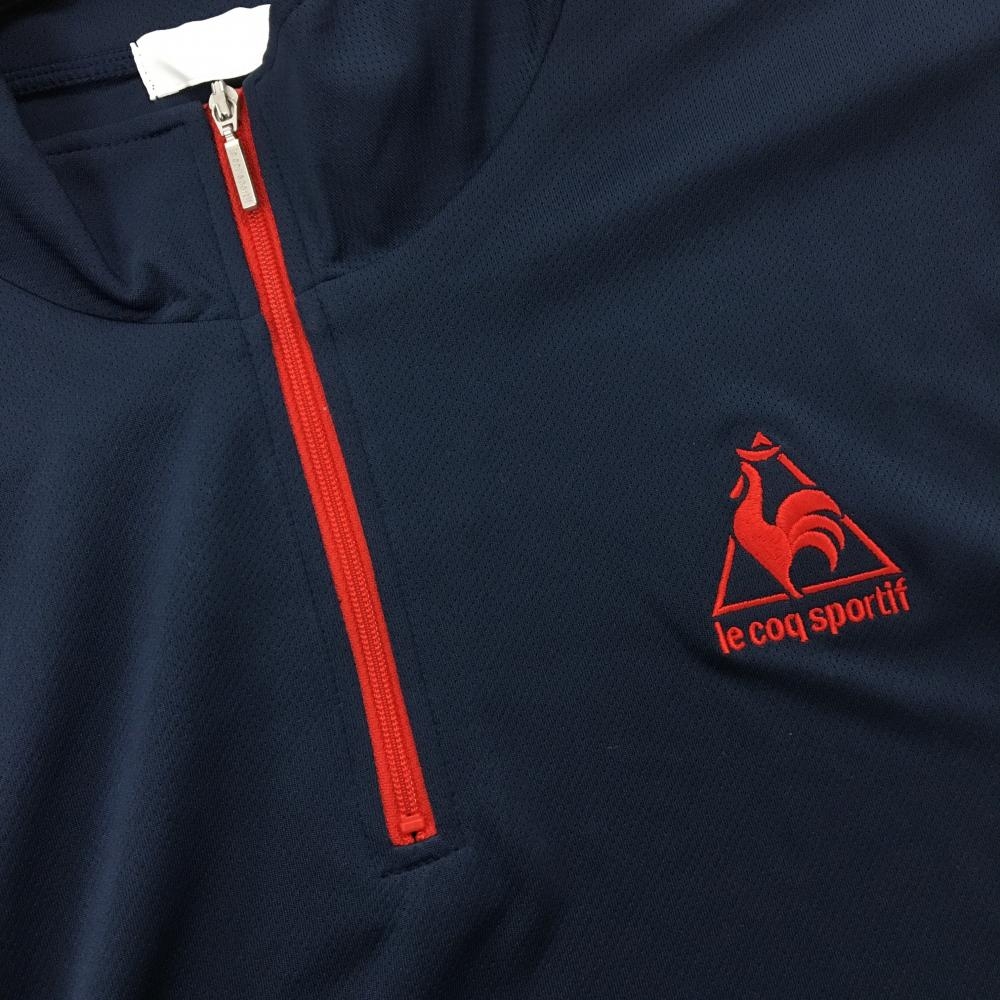 【超美品】ルコック 半袖ハイネックシャツ ネイビー×レッド ハーフジップ メンズ L ゴルフウェア le coq sportif