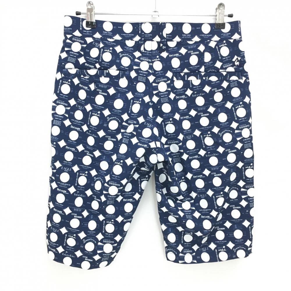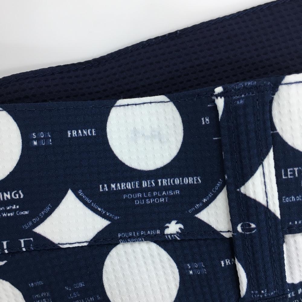 【超美品】ルコックゴルフ ハーフパンツ ネイビー×白 ドット 英字総柄 メンズ 82 ゴルフウェア le coq sportif