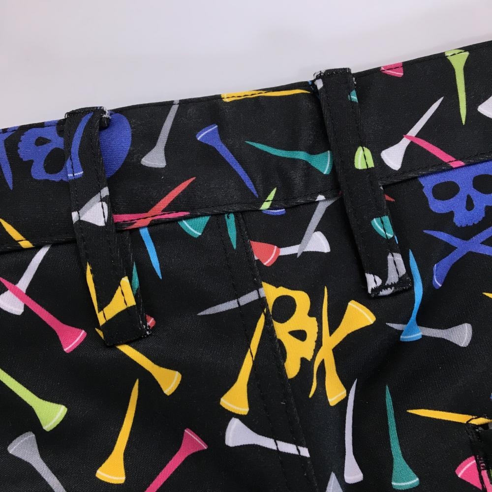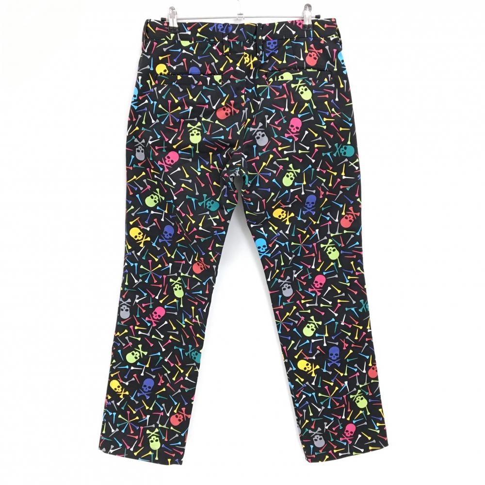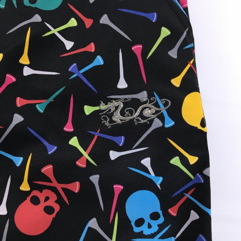 【超美品】ダンスウィズドラゴン パンツ 黒×マルチカラー スカル・ティー総柄 ストレッチ メンズ 3(L) ゴルフウェア Dance With Dragon