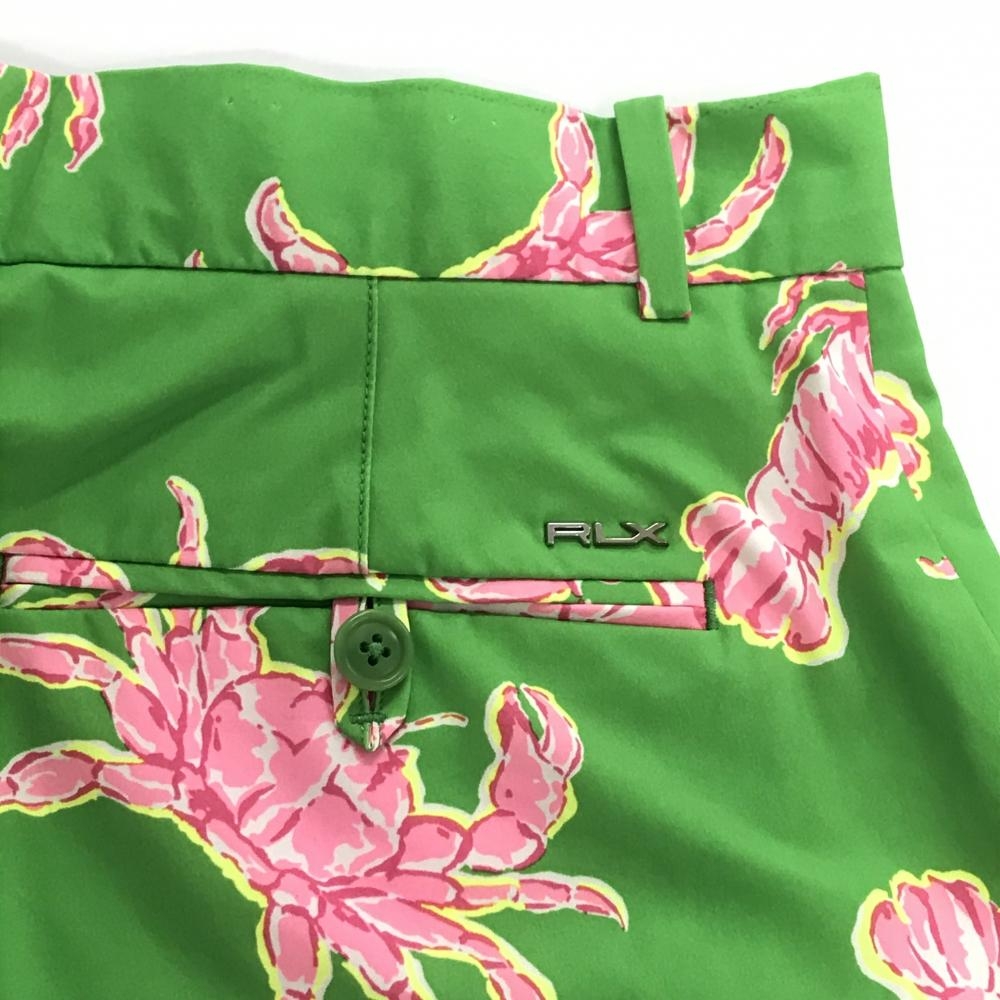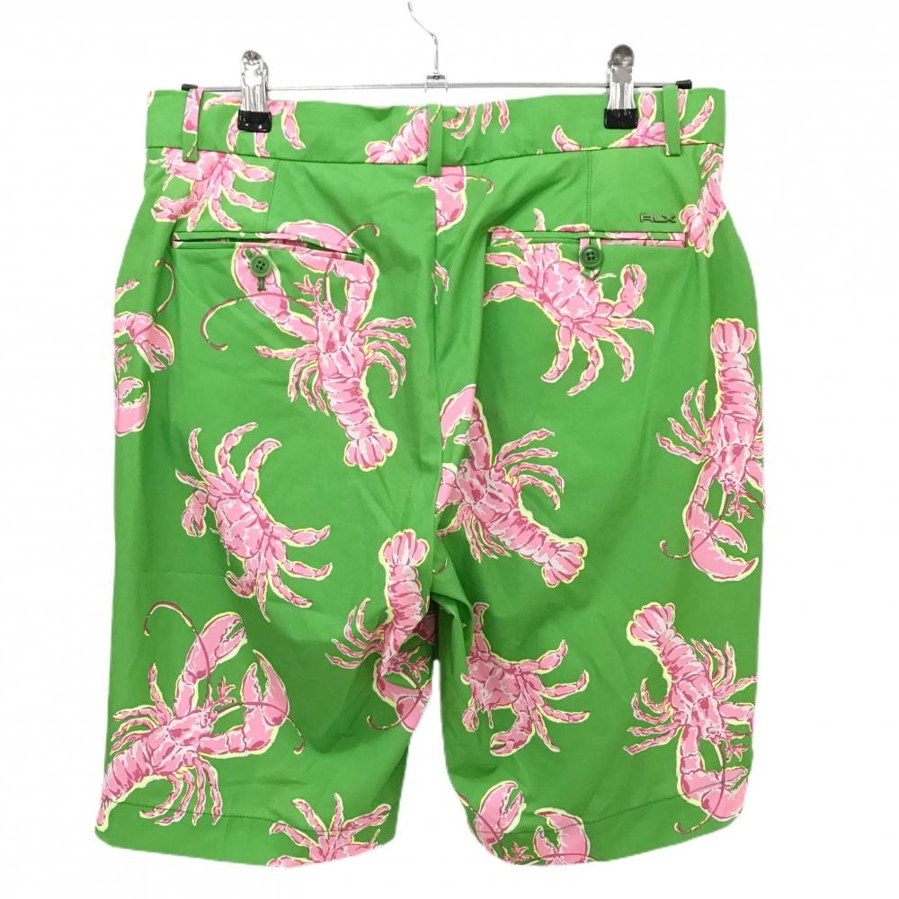 【美品】RLXラルフローレン ハーフパンツ グリーン×ピンク 総柄 カニ ザリガニ ストレッチ メンズ 30 ゴルフウェア Ralph Lauren