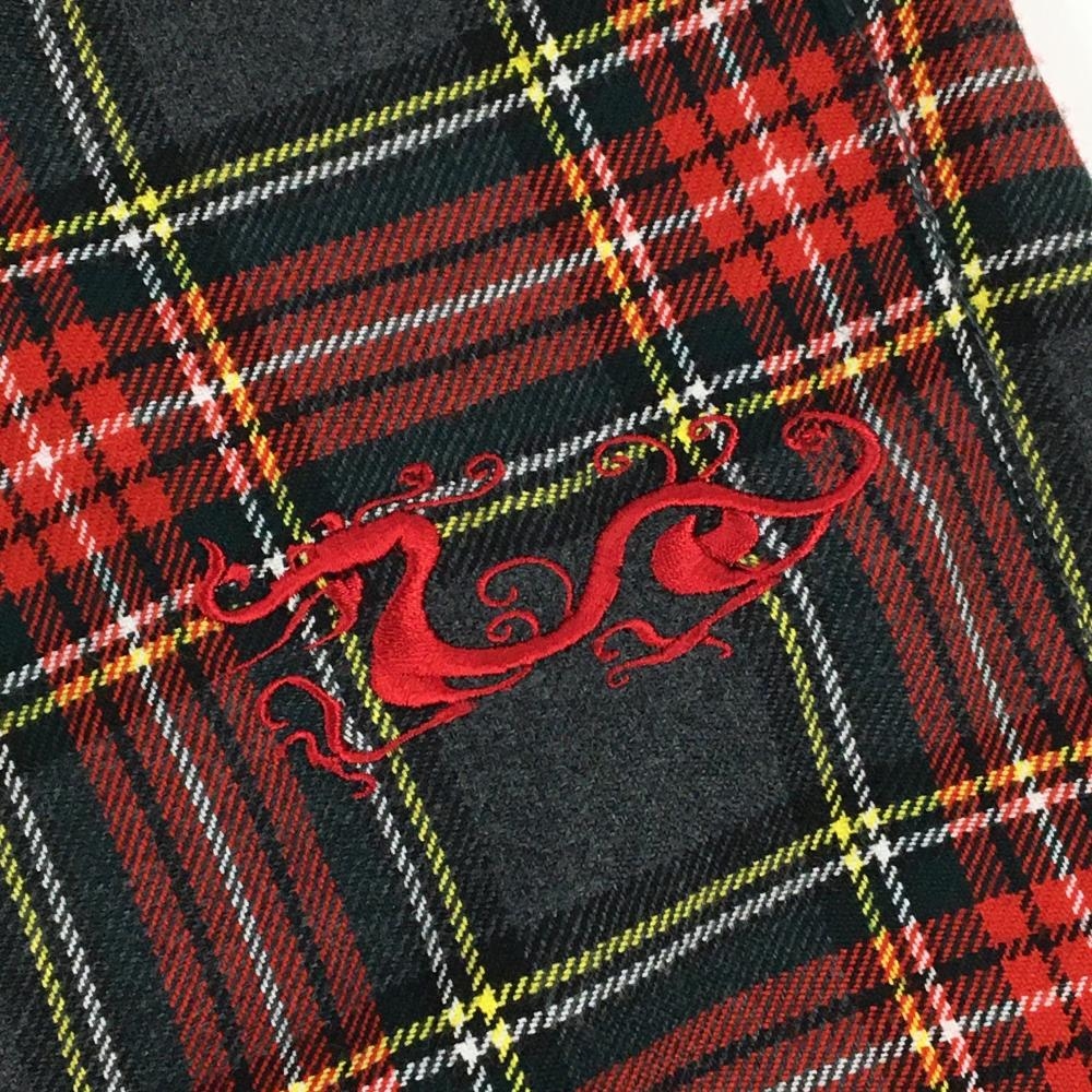 【超美品】ダンスウィズドラゴン パンツ ダークグレー×レッド×イエロー レディース 3(L) ゴルフウェア Dance With Dragon