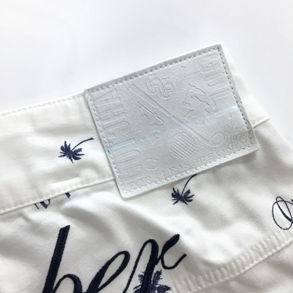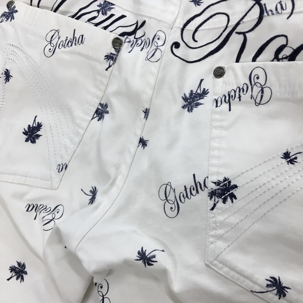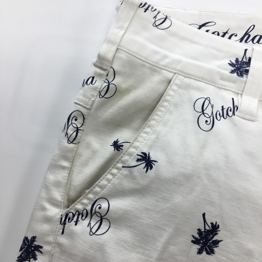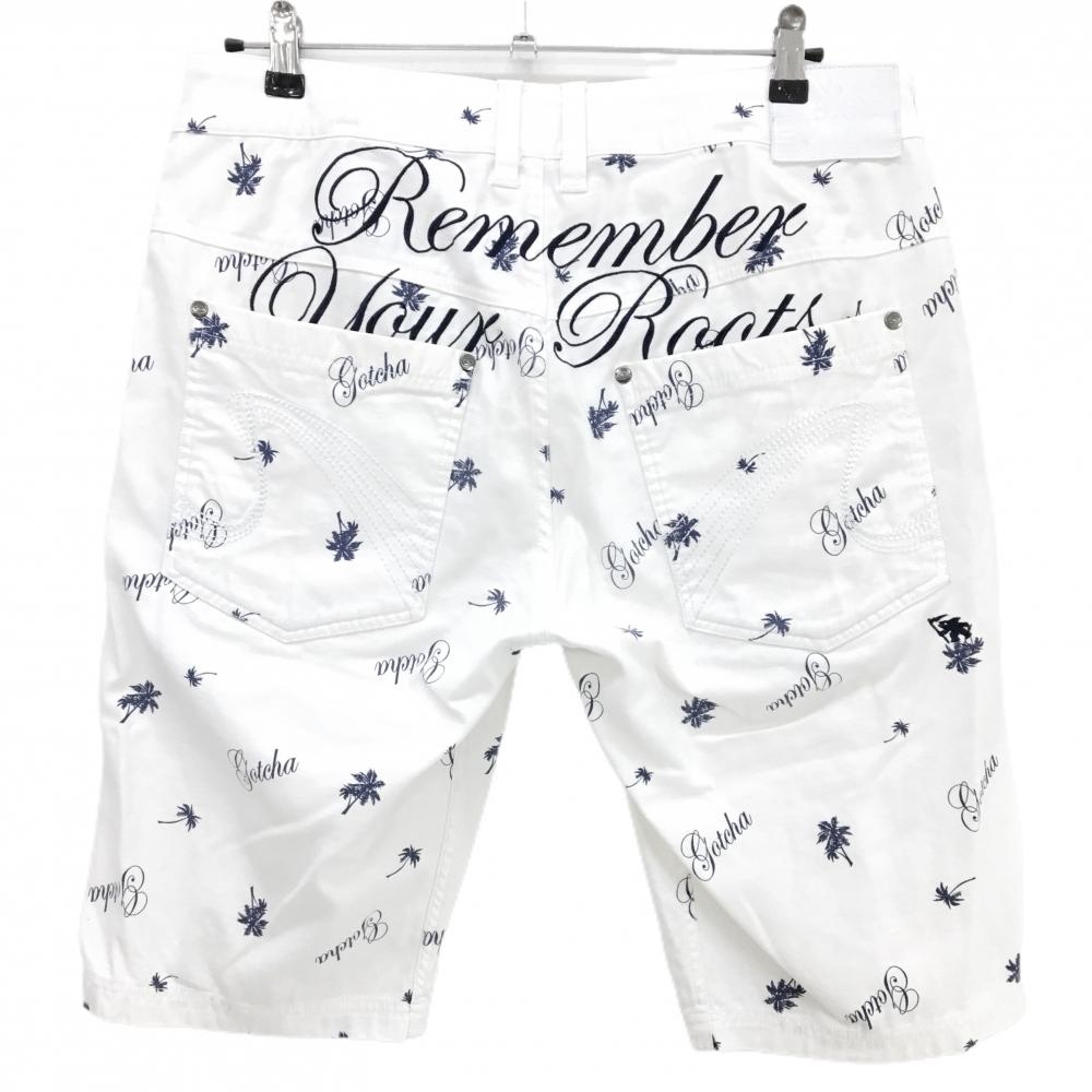 ガッチャゴルフ ハーフパンツ 白×ネイビー 総柄 ロゴ ヤシの木 メンズ L ゴルフウェア GOTCHA GOLF