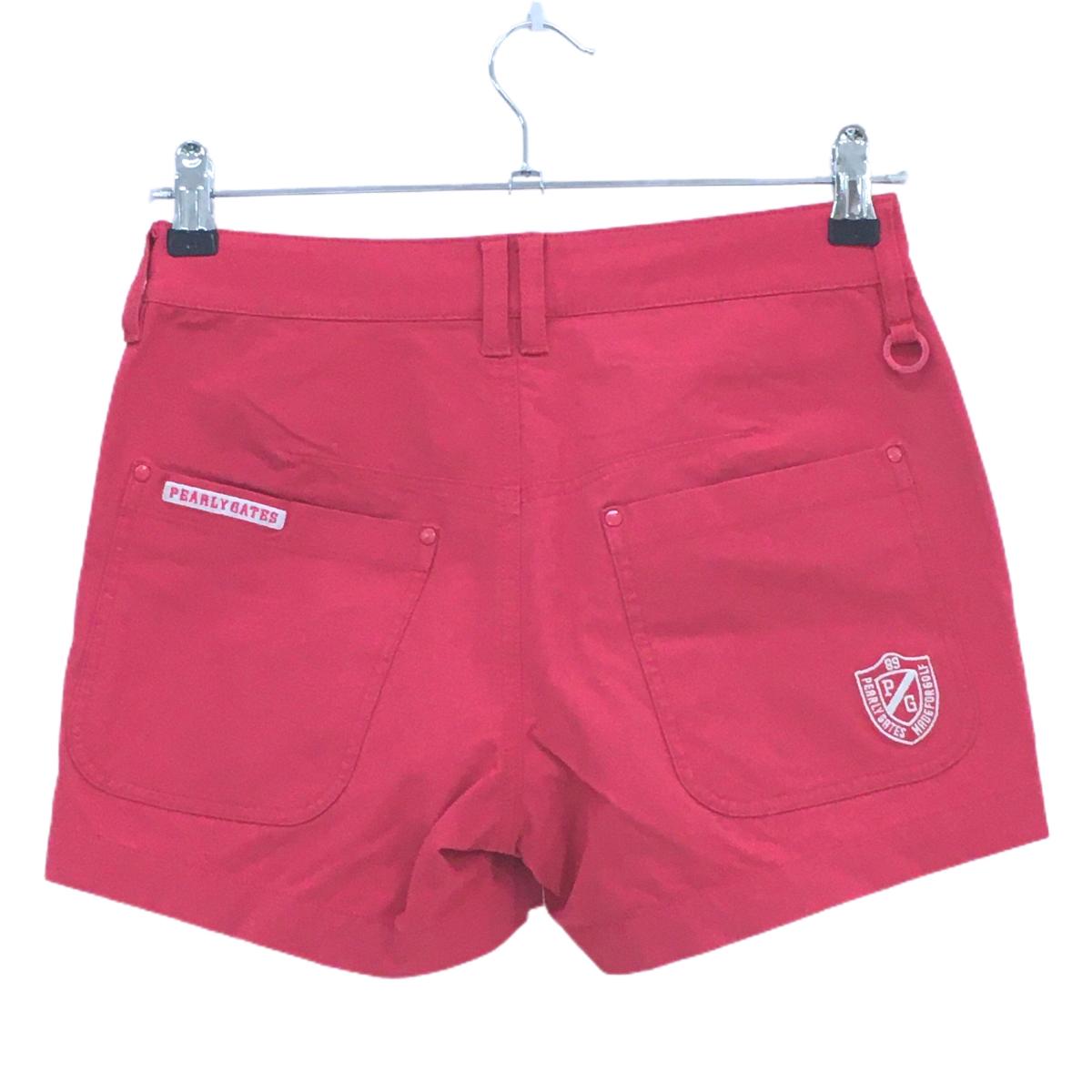 【美品】パーリーゲイツ ハーフパンツ レッド ロゴ白 ティー装着可 レディース 00(XS) ゴルフウェア PEARLY GATES