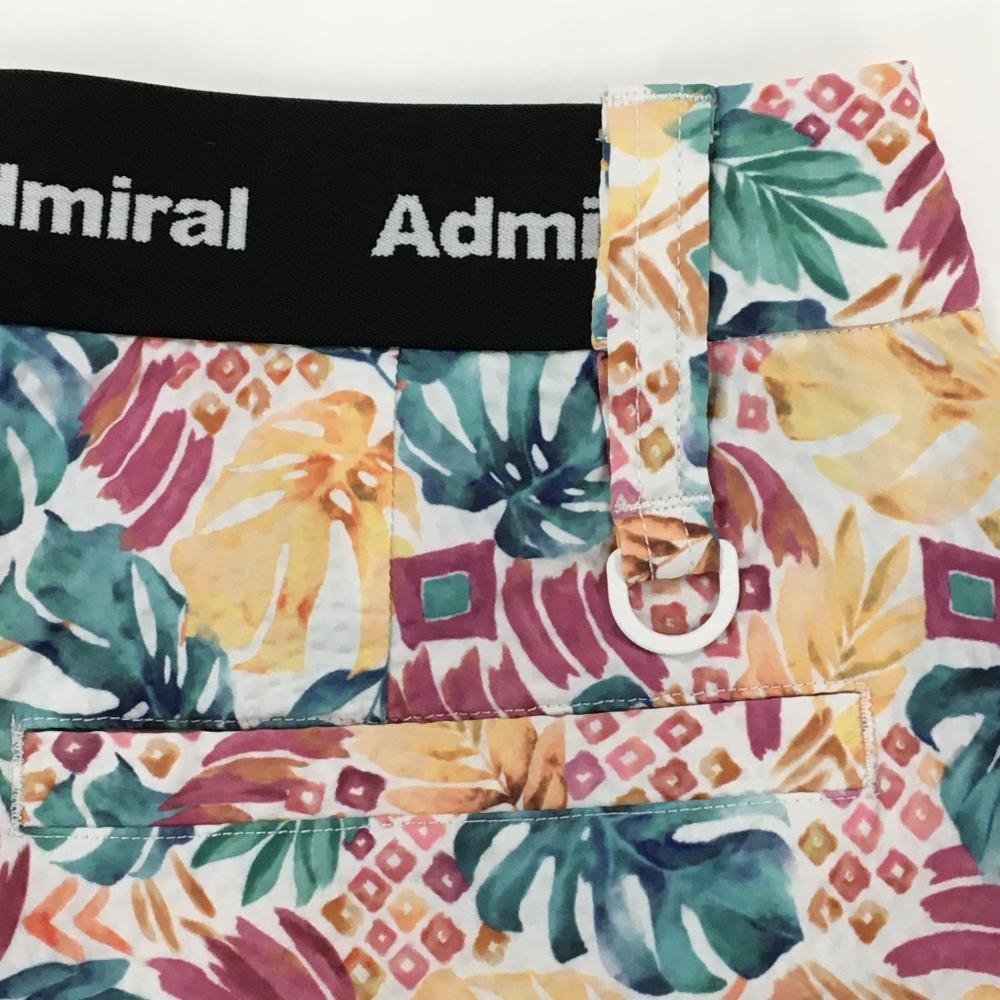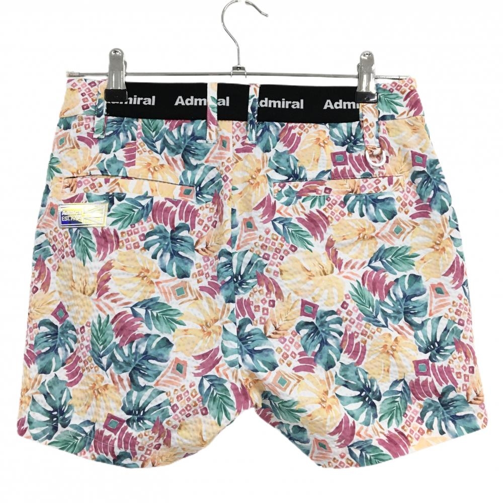 【美品】アドミラル ショートパンツ 白×マルチカラー 総柄 リーフ サッカー生地調 ストレッチ レディース M ゴルフウェア Admiral
