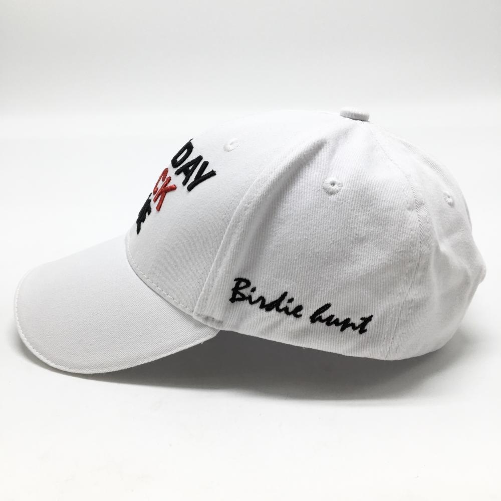 【美品】バーディーハント キャップ 白×黒 サイドロゴ刺しゅう ゴルフウェア Birdie hunt