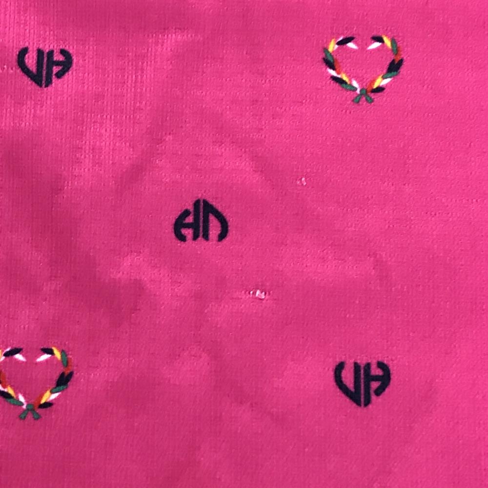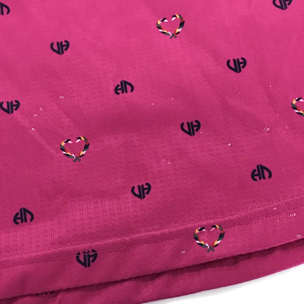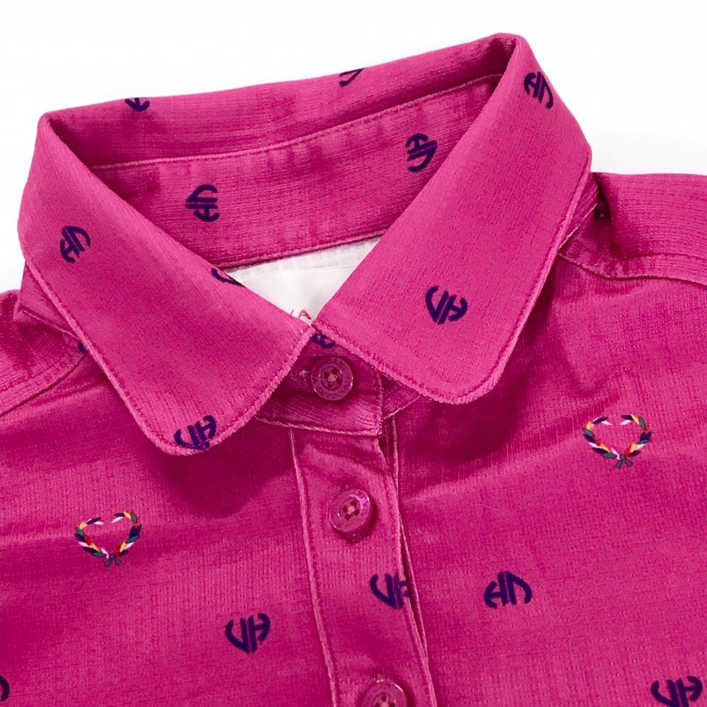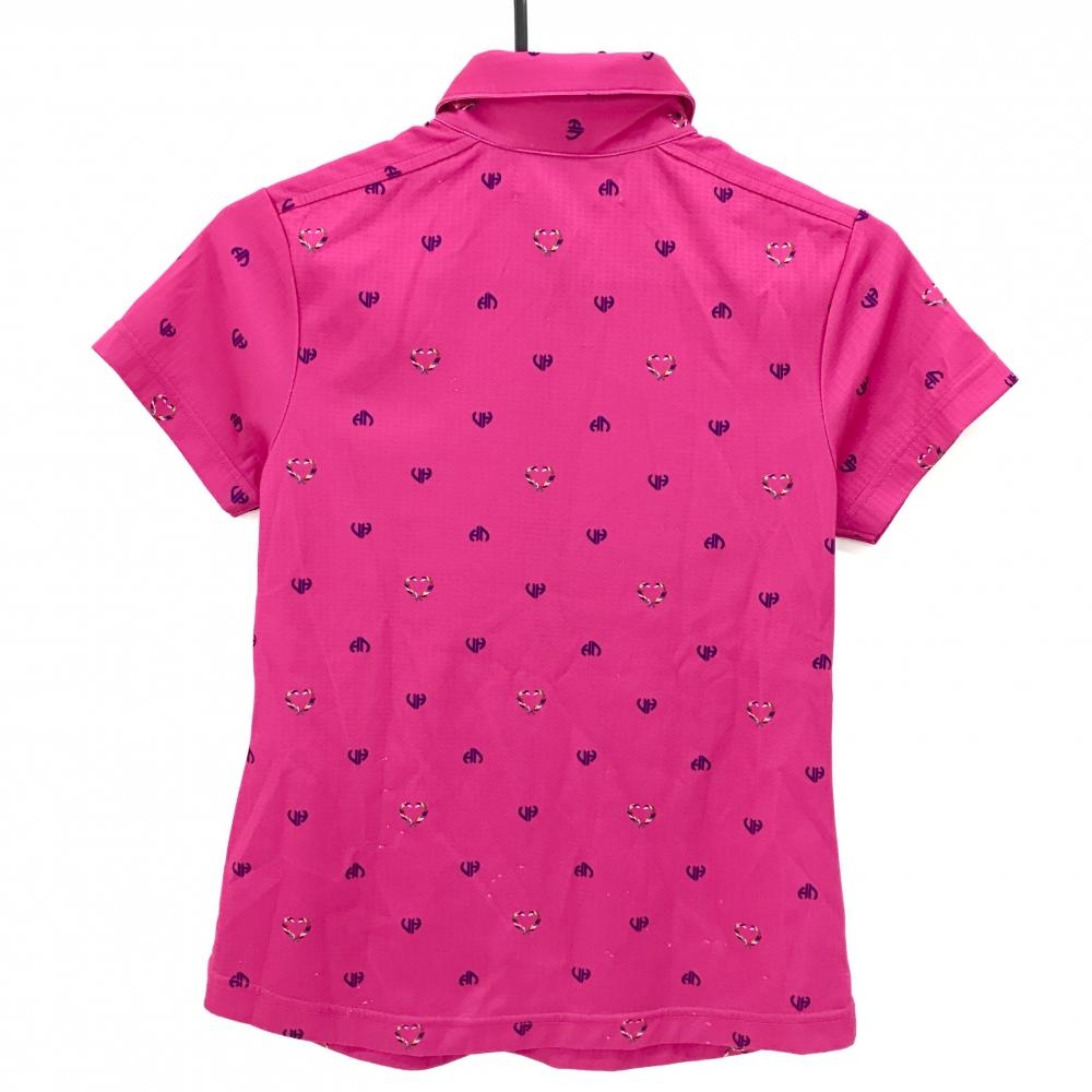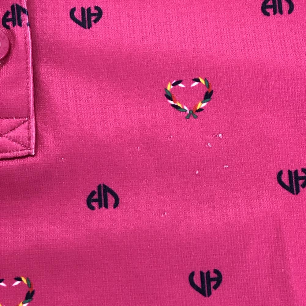 ビバハート 半袖ポロシャツ ピンク×ネイビー 総柄 レディース 40(M) ゴルフウェア VIVA HEART