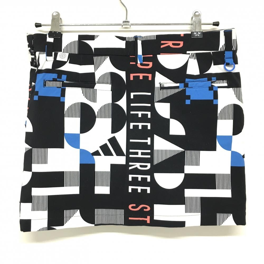 アディダス スカート 黒×白 総柄 内側インナーパンツ ストレッチ レディース M ゴルフウェア adidas
