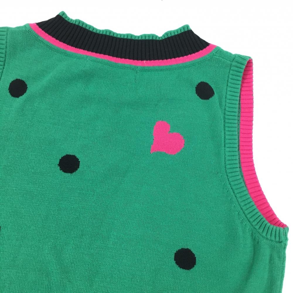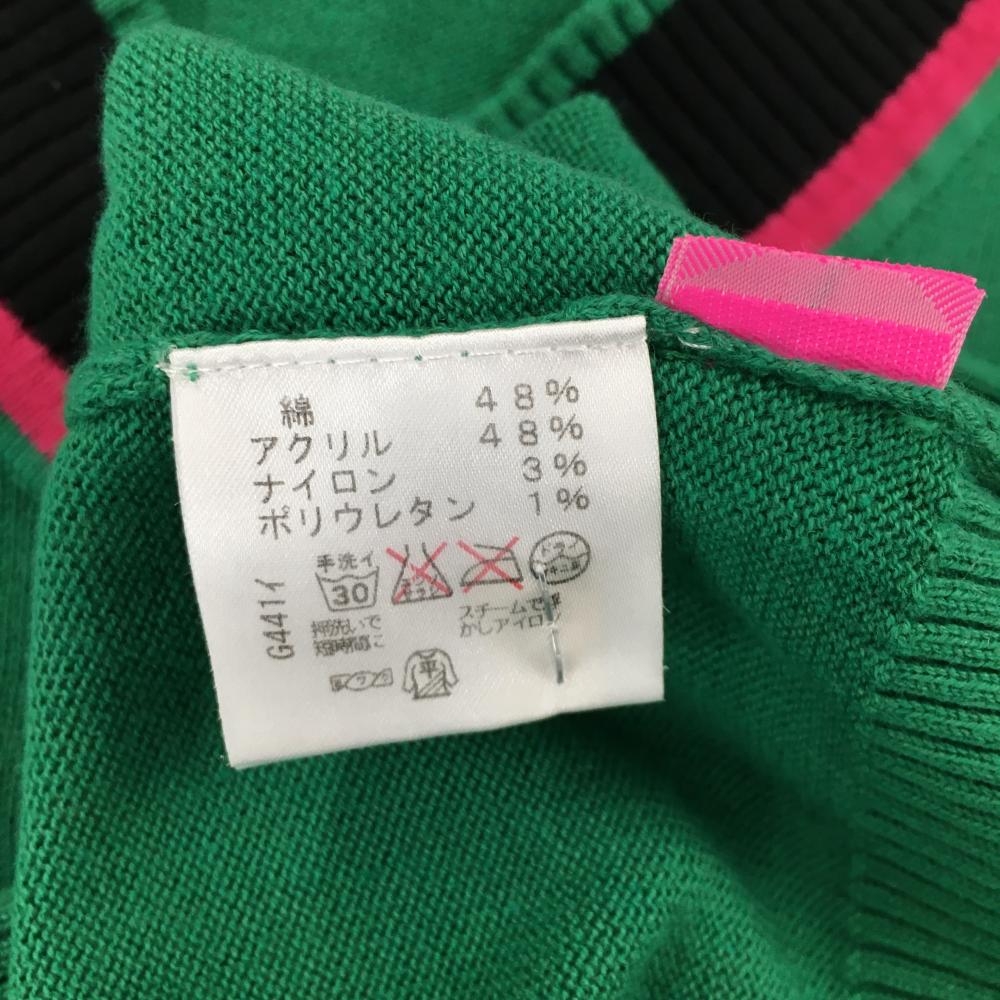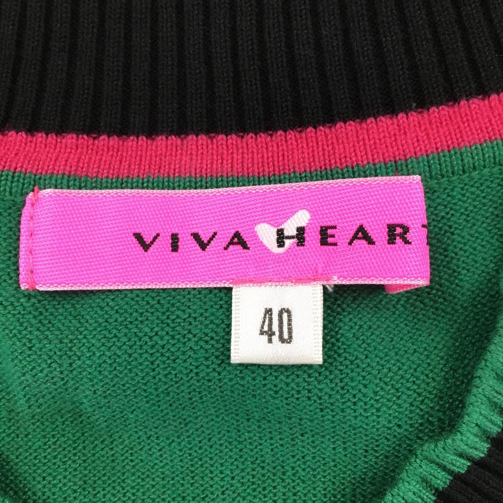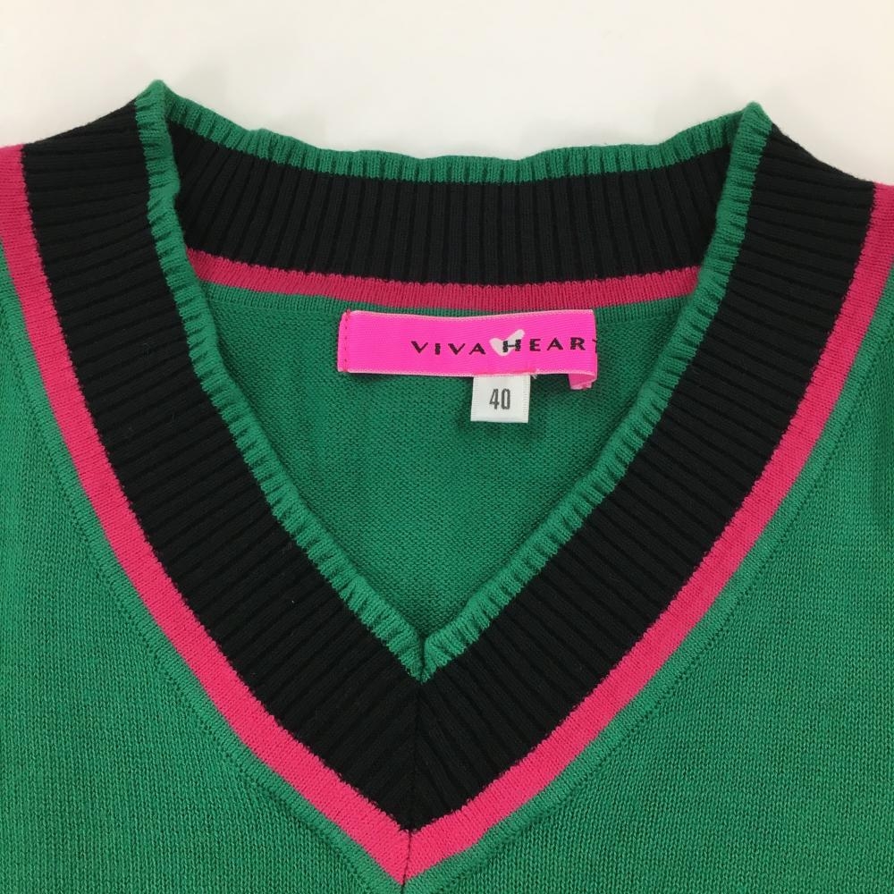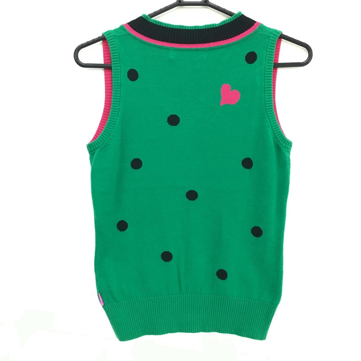 ビバハート ニットベスト グリーン×黒×ピンク 背面ドット コットン混 レディース 40(M) ゴルフウェア VIVA HEART