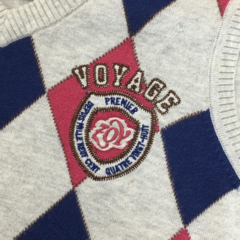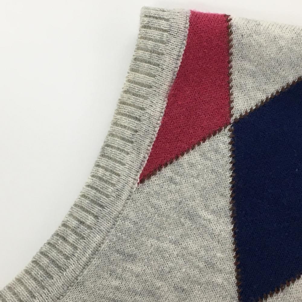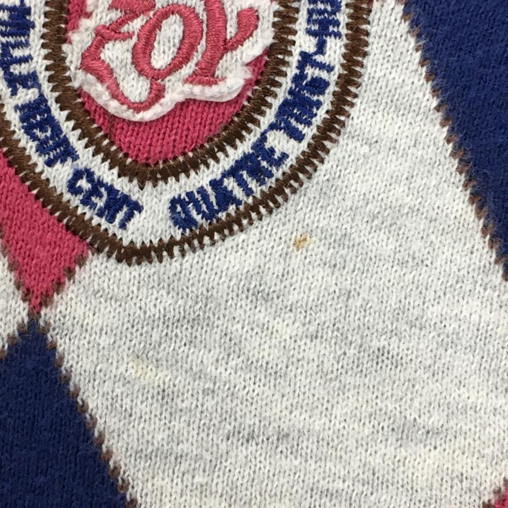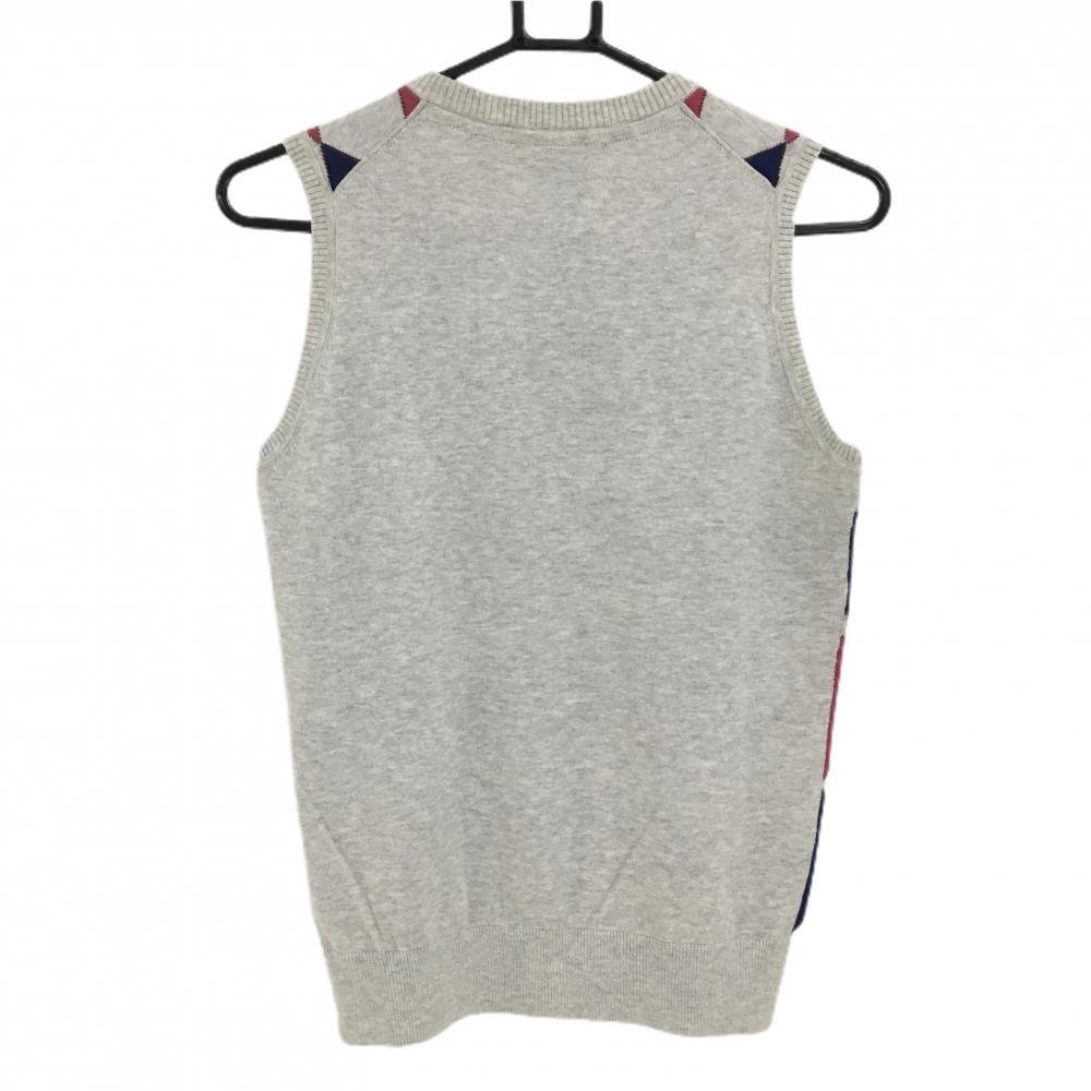 ゾーイ ニットベスト ライトグレー×ネイビー×ピンク 前身頃ダイヤ柄 カシミヤ混 レディース 38(M) ゴルフウェア ZOY