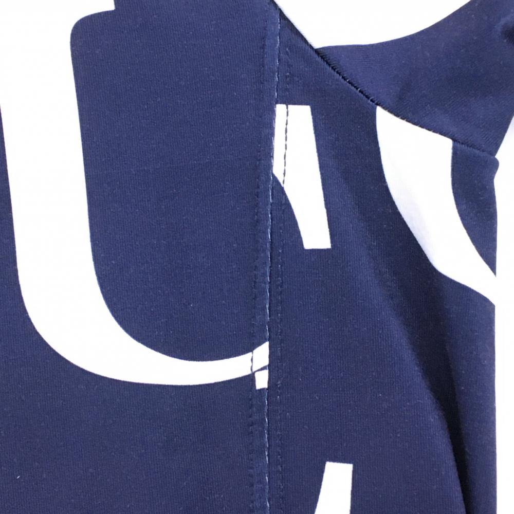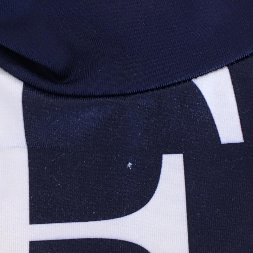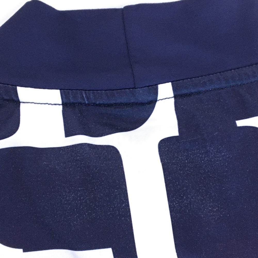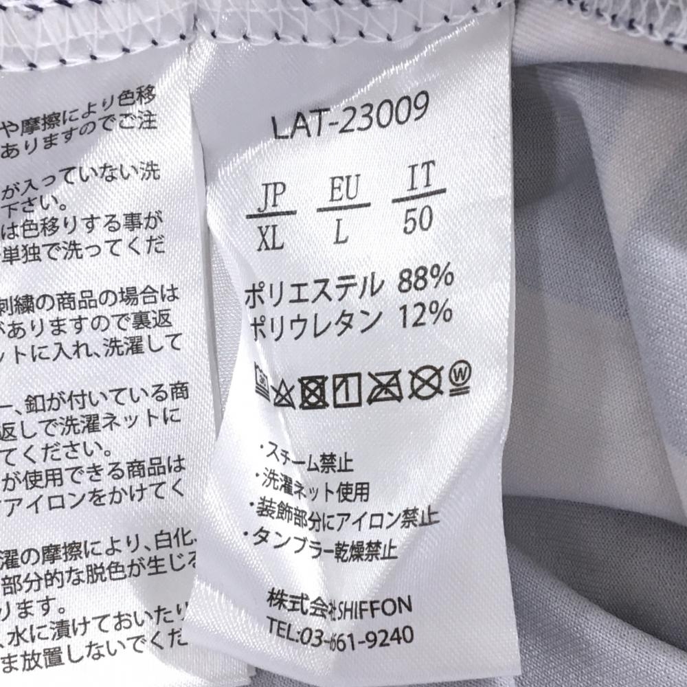 リュクスエイケイエムプラス 半袖ハイネックシャツ ネイビー×白 ロゴ総柄 ストレッチ メンズ XL ゴルフウェア LUXEAKMPLUS