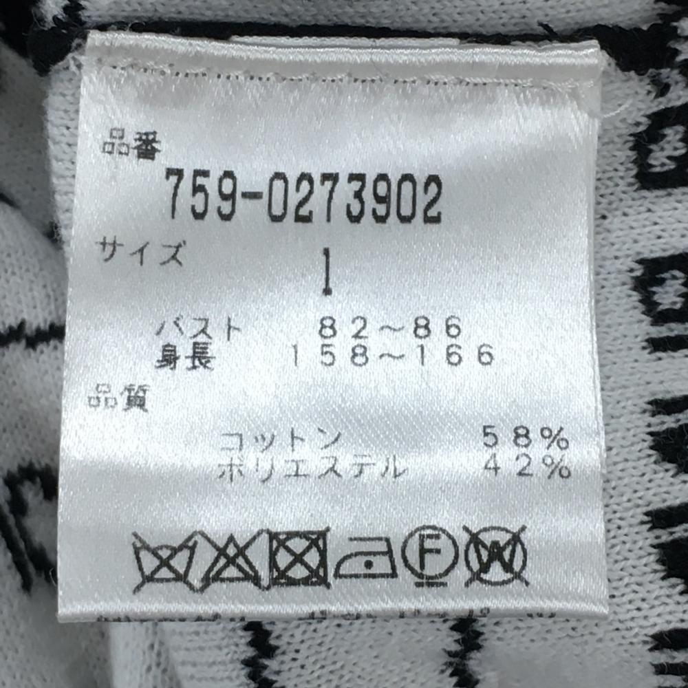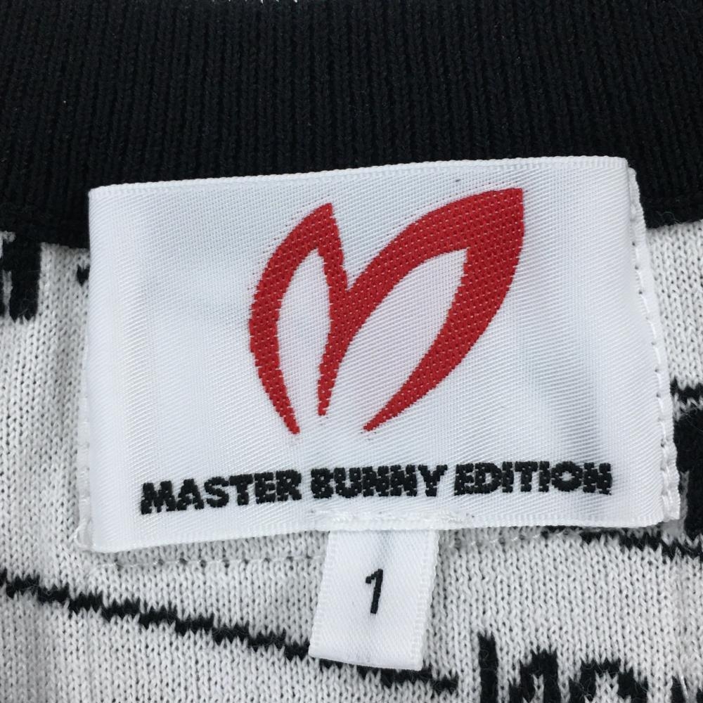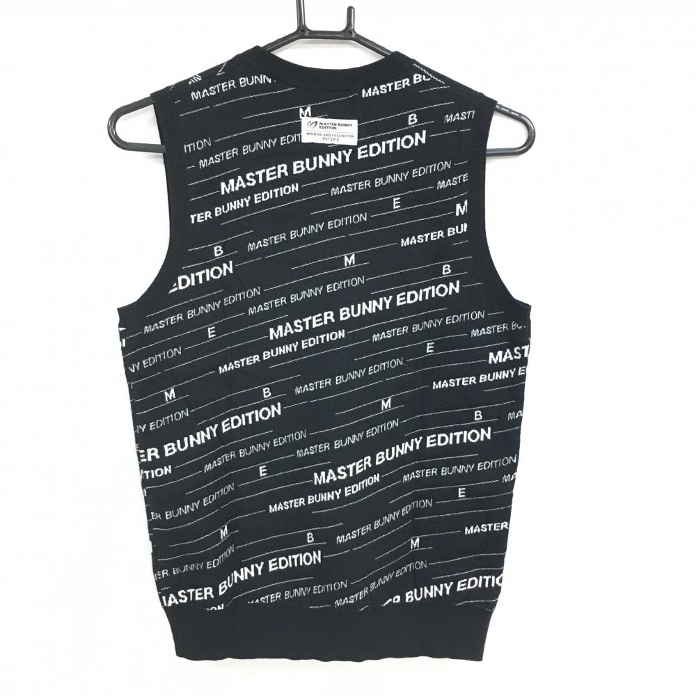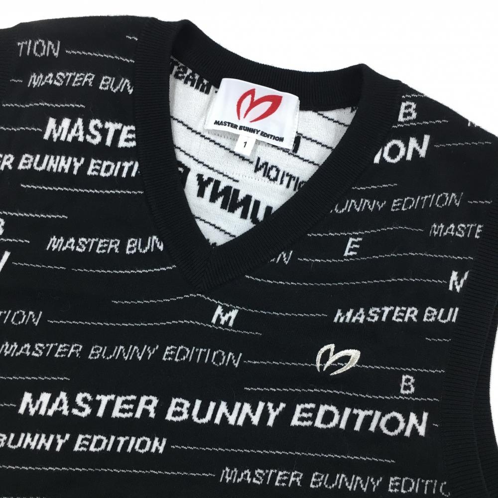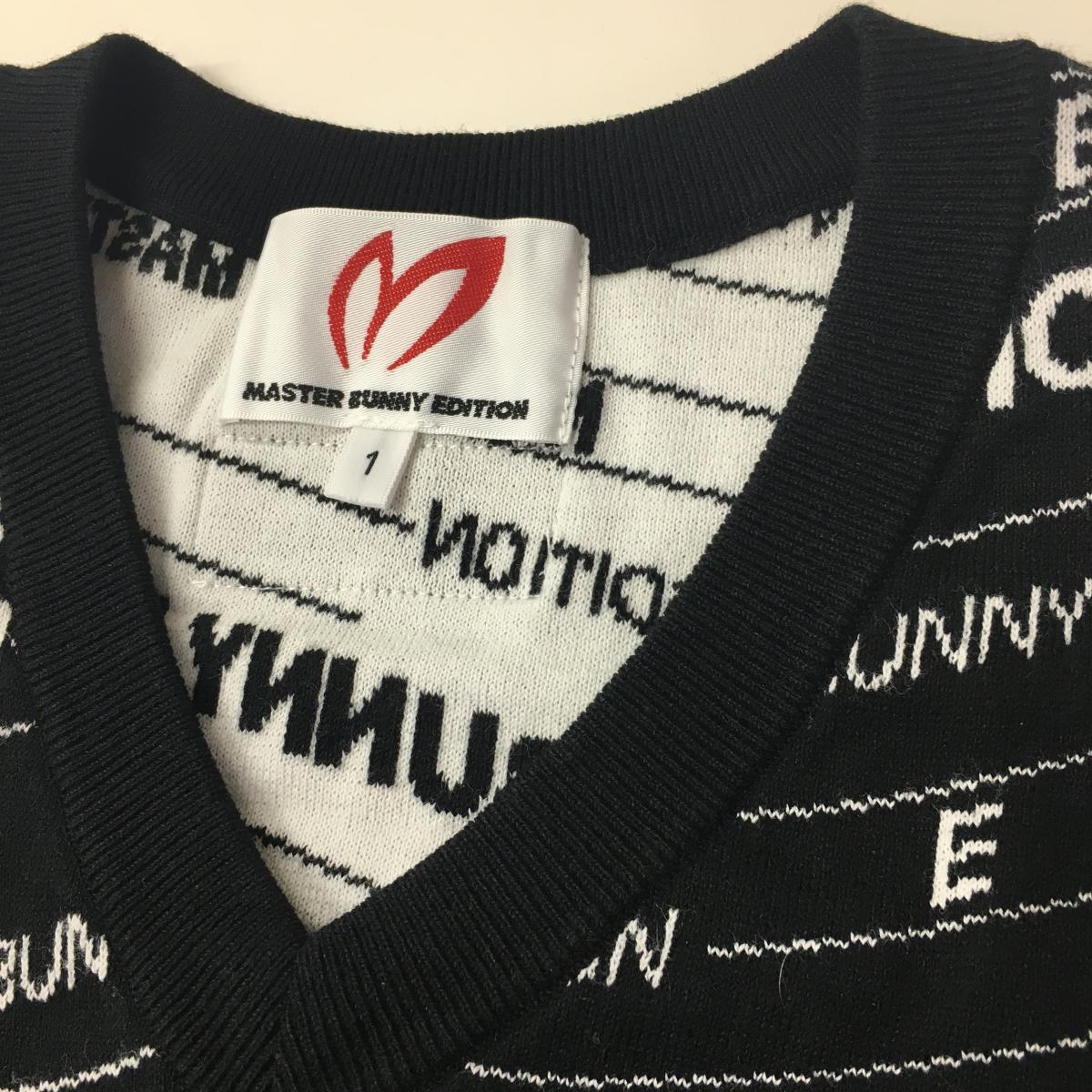 【美品】マスターバニー ニットベスト 黒×白 ロゴボーダー風 コットン混 レディース 1(M) ゴルフウェア MASTER BUNNY EDITION