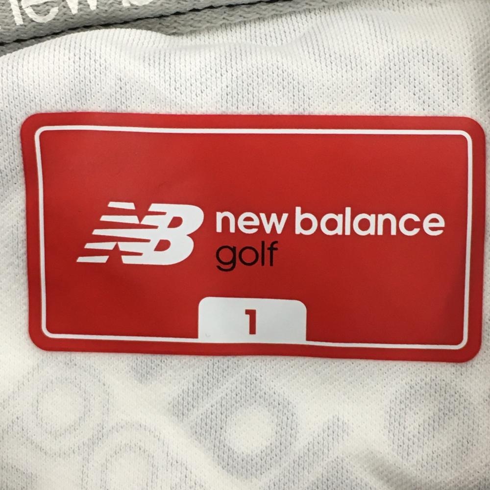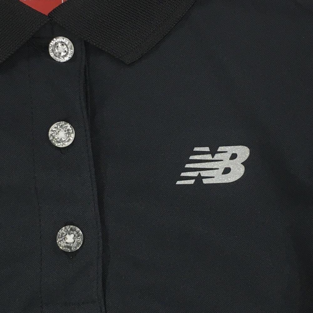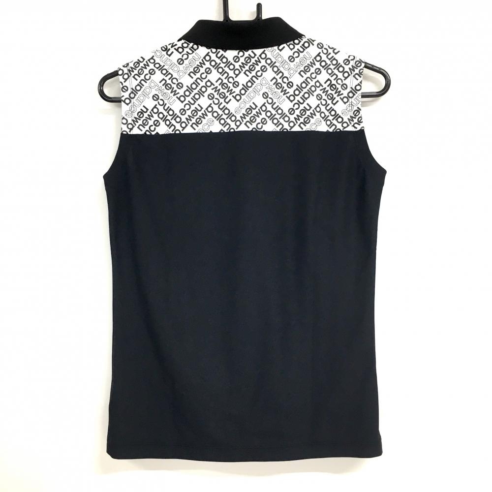 【美品】ニューバランスゴルフ ノースリーブポロシャツ 黒×白 肩ロゴ総柄 レディース 1(M) ゴルフウェア New Balance