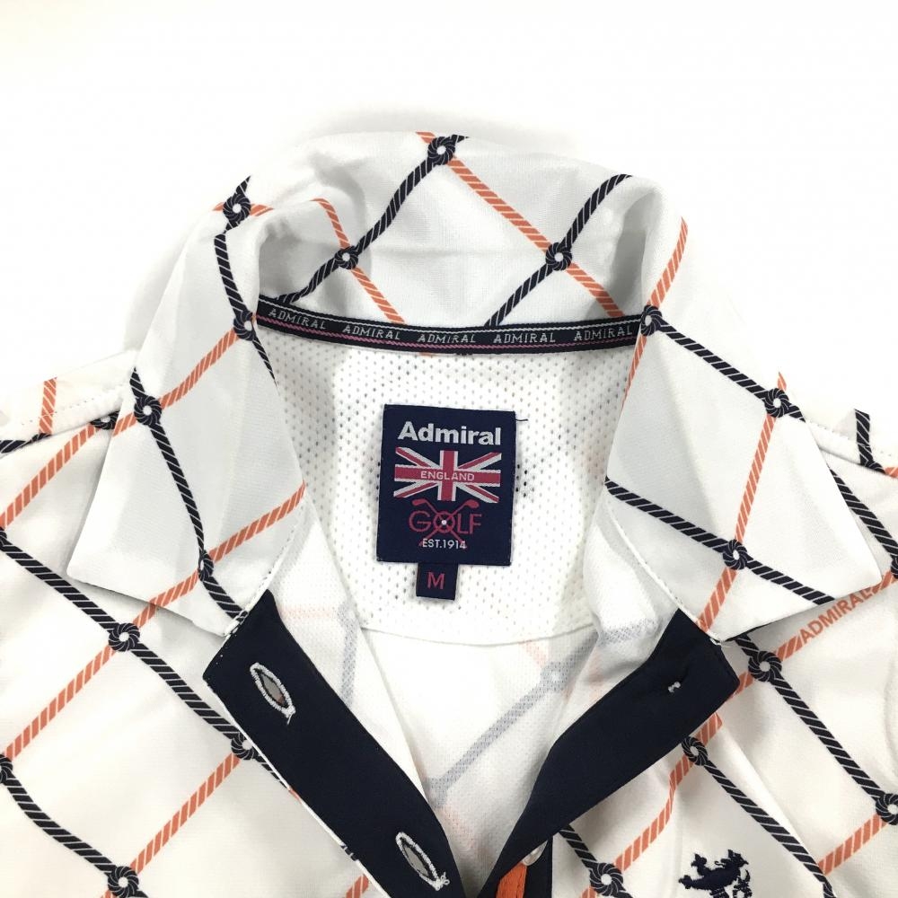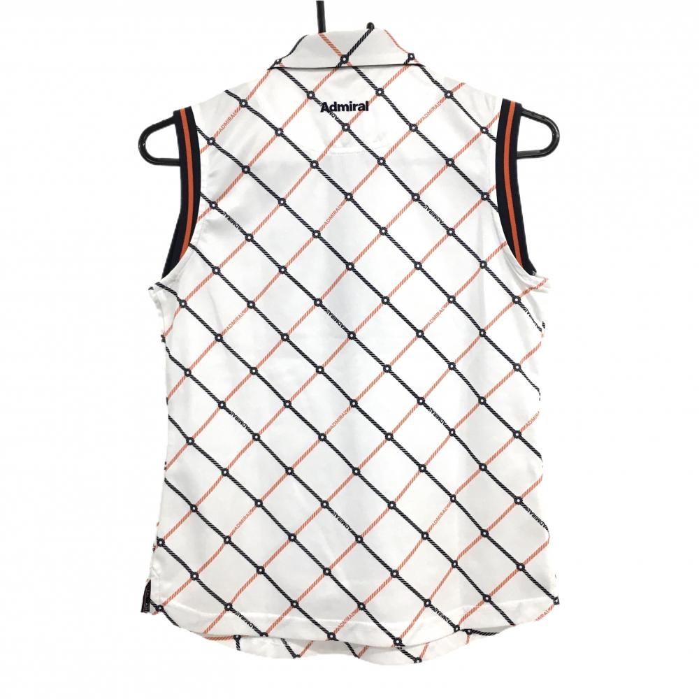 アドミラル ノースリーブポロシャツ 白×ネイビー ロープ格子柄 ロゴ刺しゅう レディース M ゴルフウェア Admiral