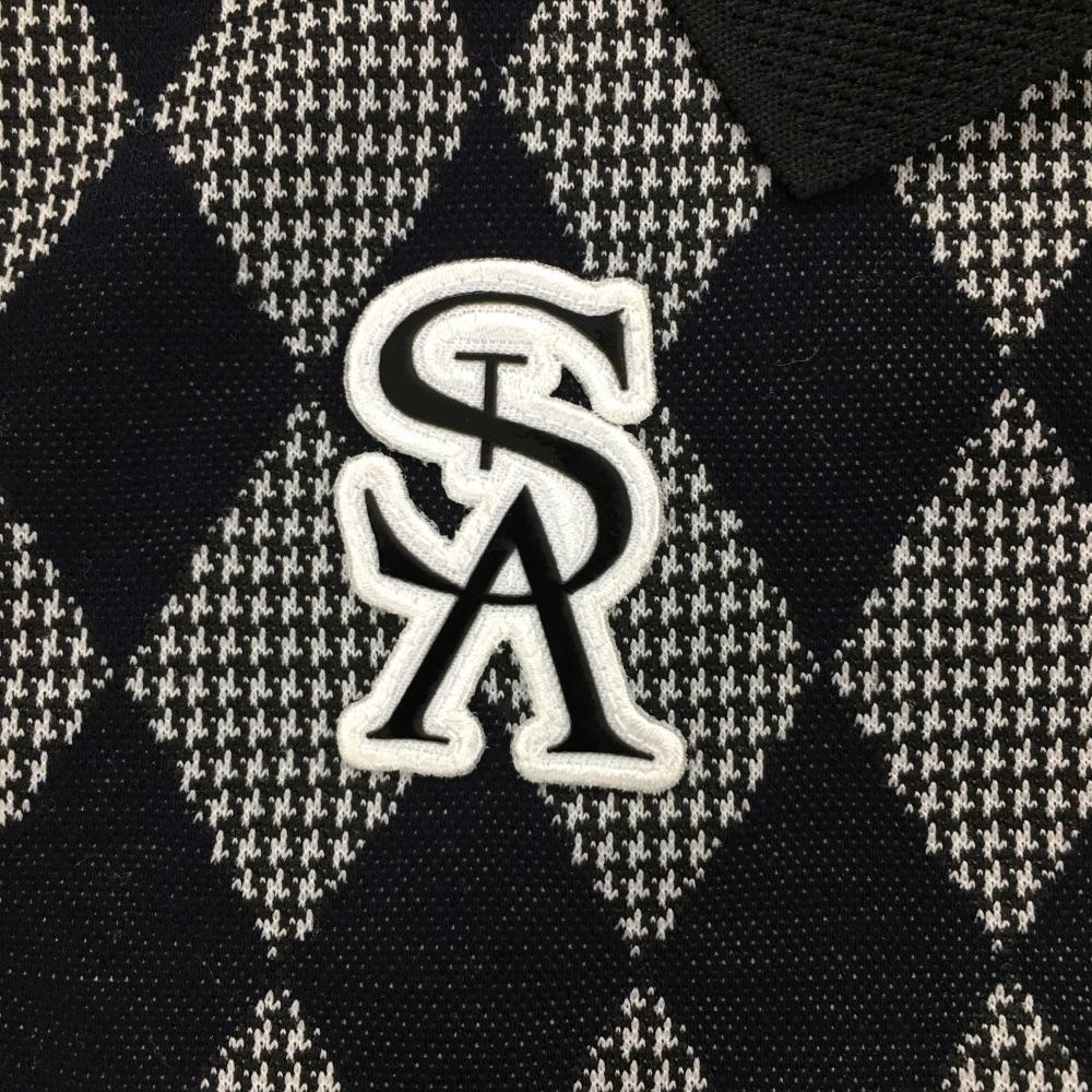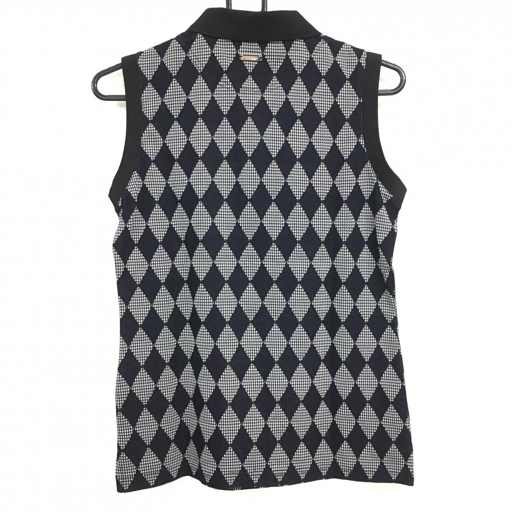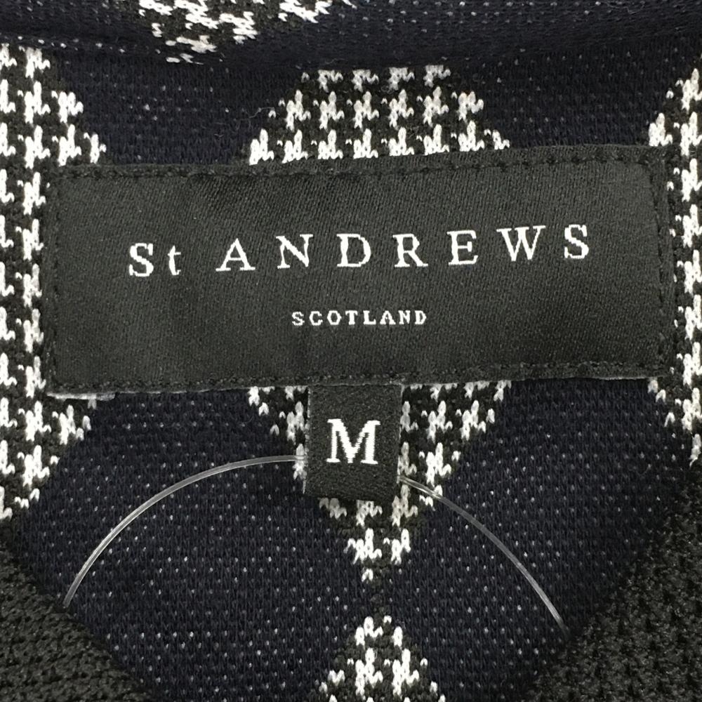 【超美品】セントアンドリュース ノースリーブポロシャツ 黒×白 ダイヤ柄 ロゴ刺しゅう レディース M ゴルフウェア St ANDREWS