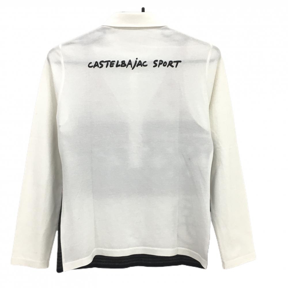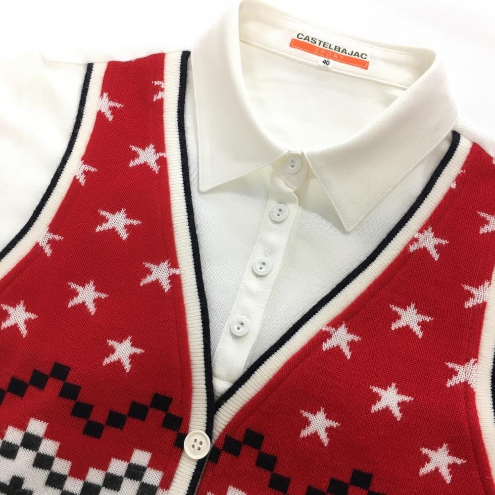 【美品】カステルバジャック 長袖ポロシャツ 白×レッド 重ね着風 ニット レディース 40(M) ゴルフウェア CASTELBAJAC