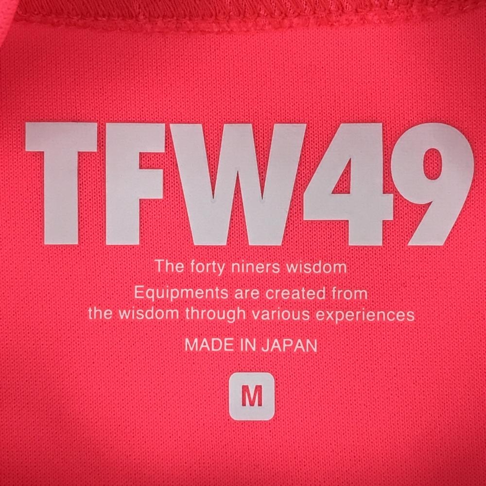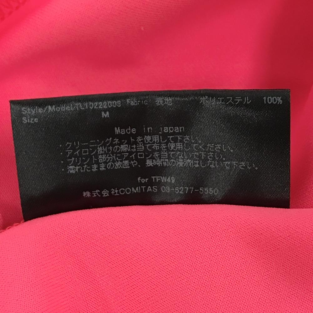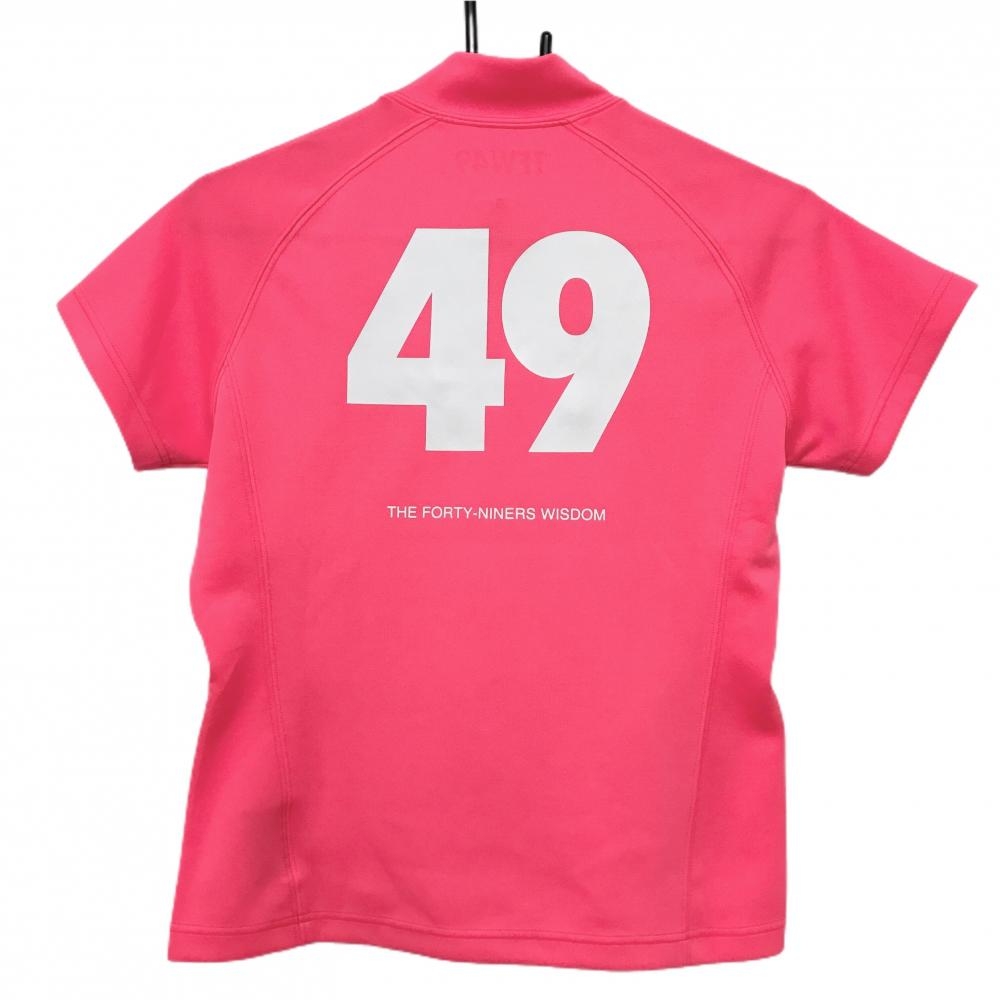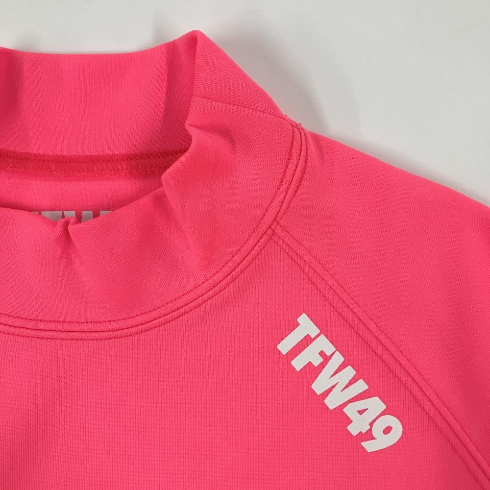 【超美品】TFW49 半袖ハイネックシャツ 蛍光ピンク×白 ロゴプリント レディース M ゴルフウェア TFW49