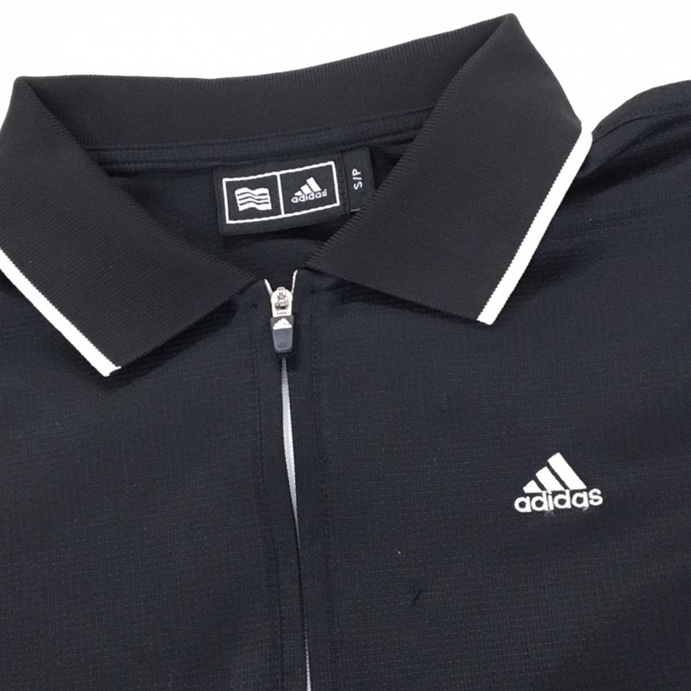 アディダス 半袖ポロシャツ 黒 袖3ライン ハーフジップ レディース S/P ゴルフウェア adidas