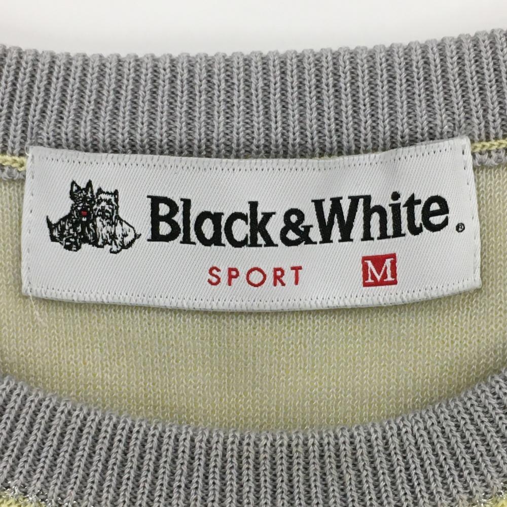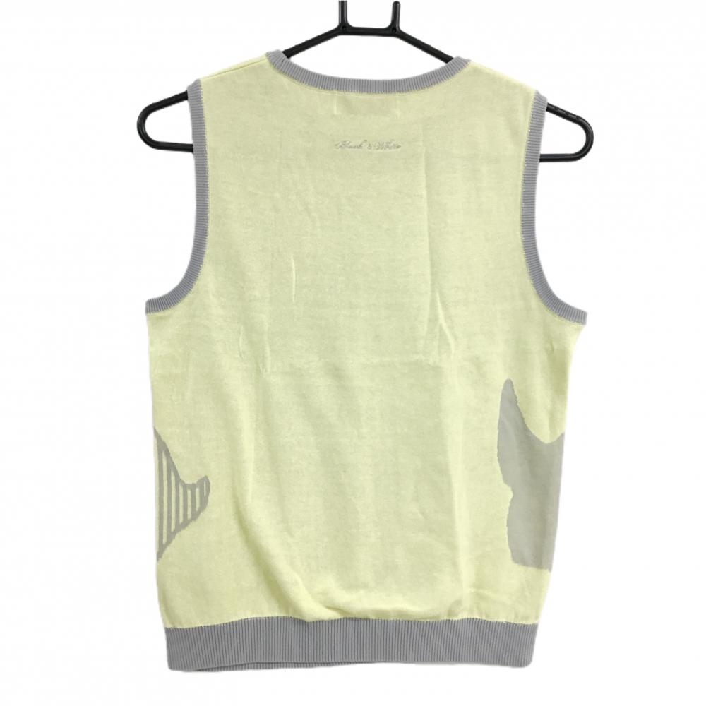 【超美品】ブラックアンドホワイト ニットベスト イエロー×グレー フロントロゴ 背面刺しゅう レディース ゴルフウェア Black&White