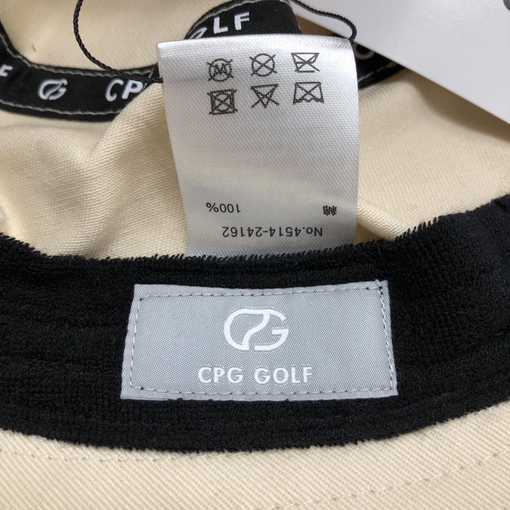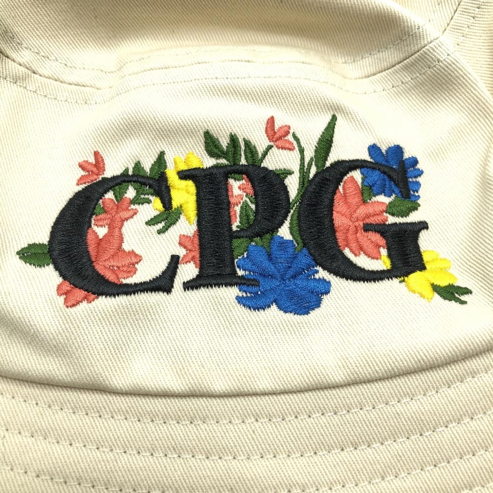【新品】CPG バケットハット ベージュ 花刺しゅう 綿100% ロゴ黒 ゴルフウェア CPG