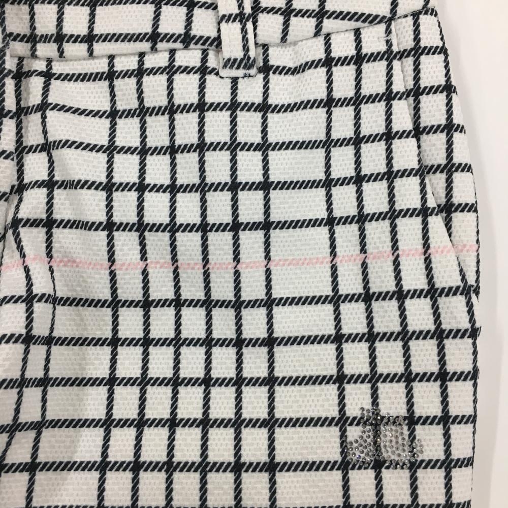 【美品】ブラックアンドホワイト パンツ 白×黒 格子柄 バックロゴ レディース S ゴルフウェア Black&White