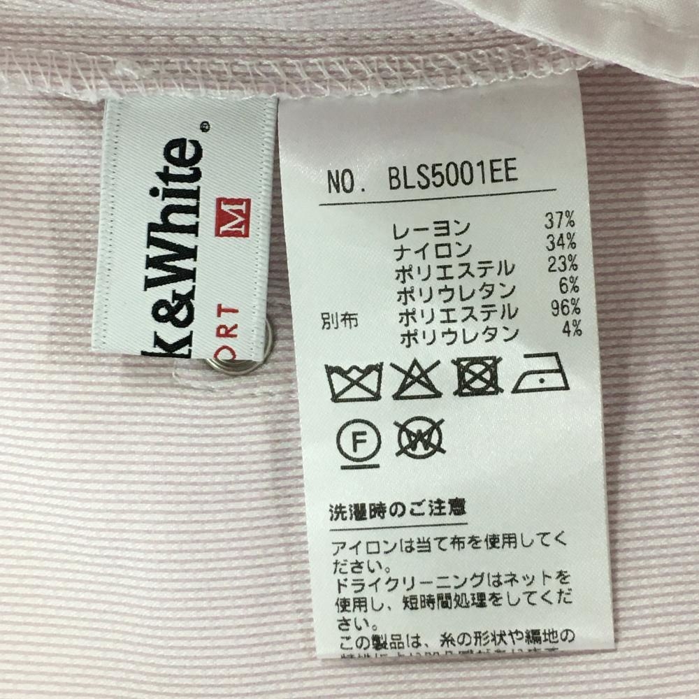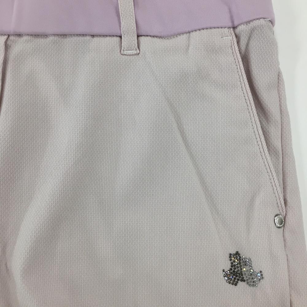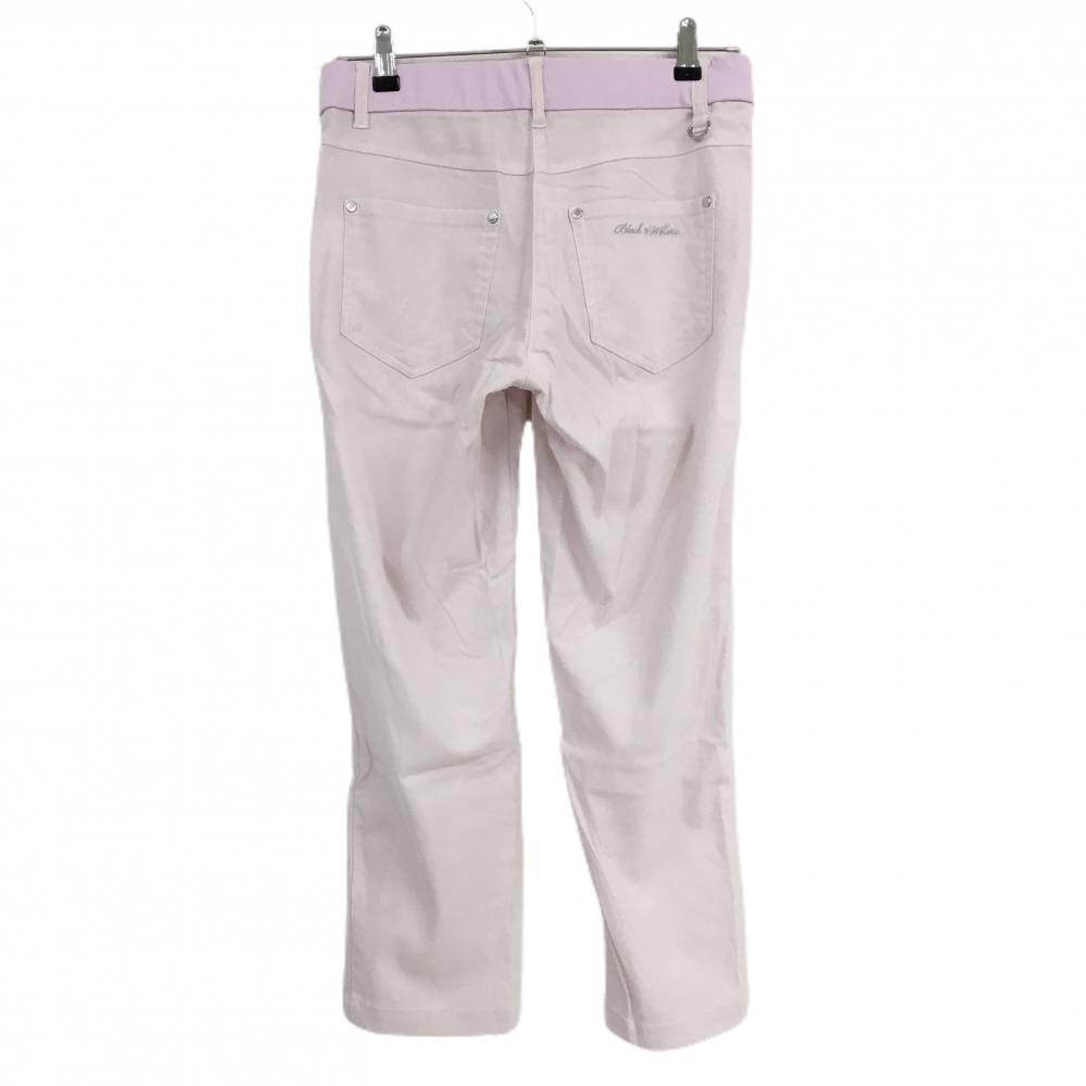 【美品】ブラックアンドホワイト パンツ ピンク×白 織生地 ウエストゴム ラインストーンロゴ レディース M ゴルフウェア Black&White