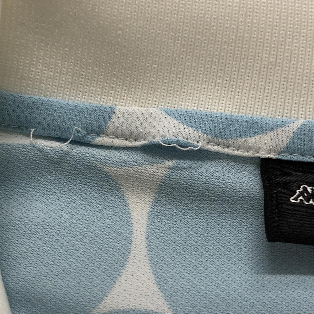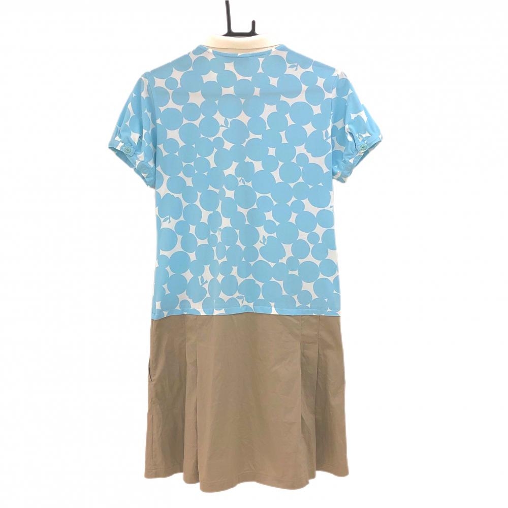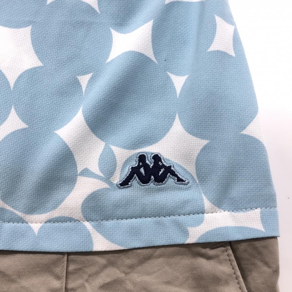カッパ 半袖ポロワンピース 白×ライトブルー×グレージュ 上部柄 リンゴ パフスリーブ ロゴワッペン レディース L ゴルフウェア Kappa