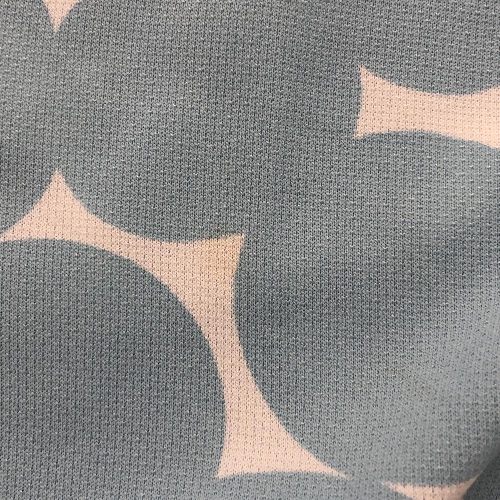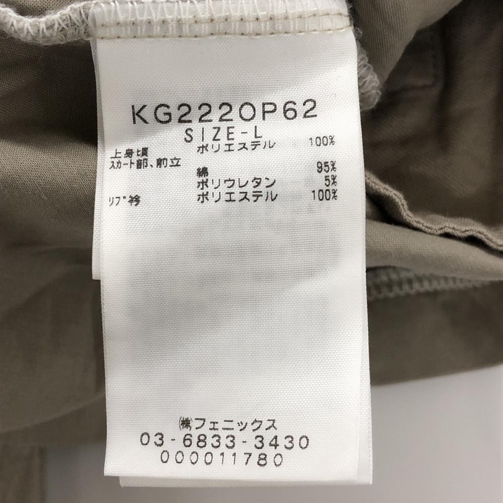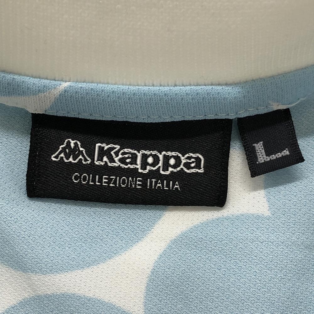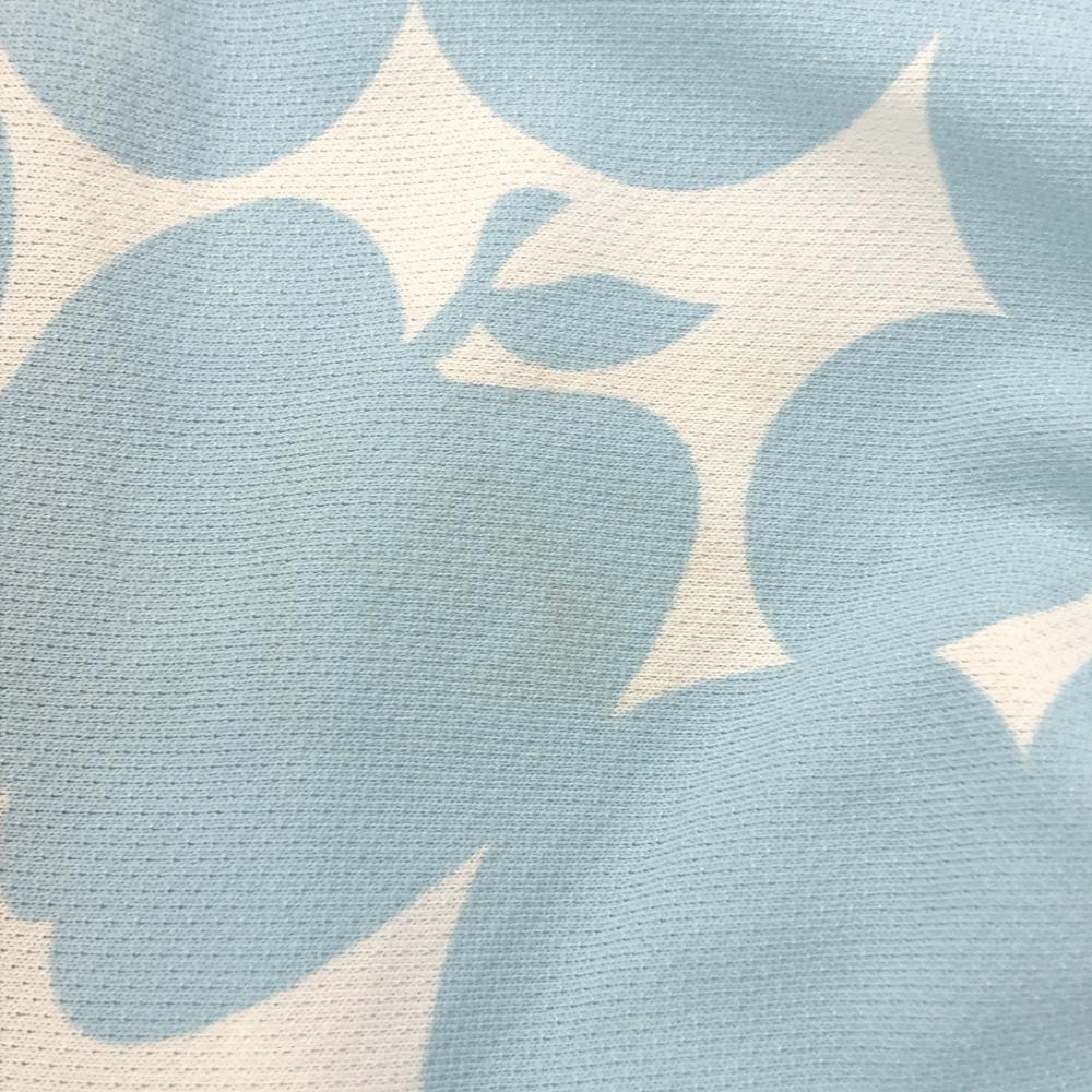 カッパ 半袖ポロワンピース 白×ライトブルー×グレージュ 上部柄 リンゴ パフスリーブ ロゴワッペン レディース L ゴルフウェア Kappa