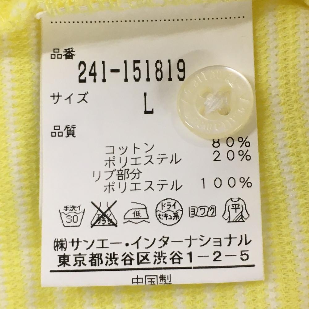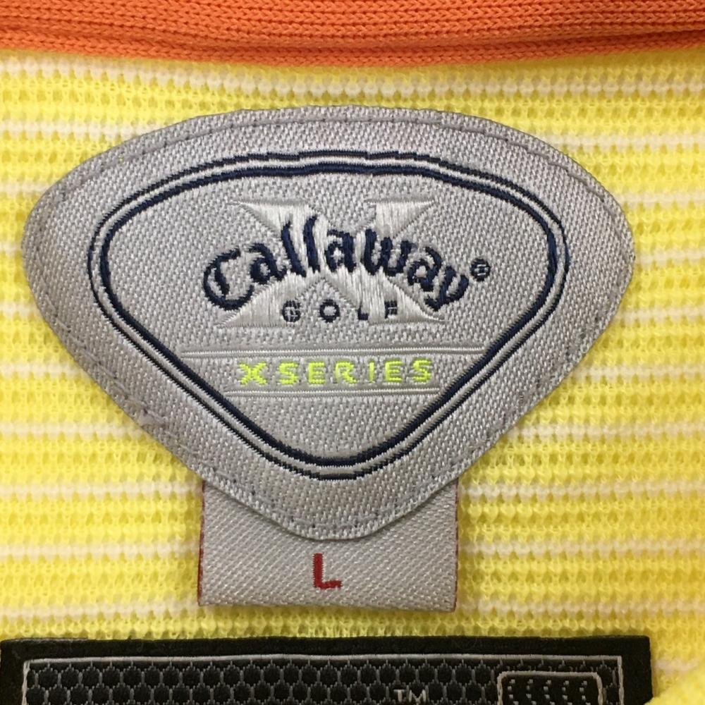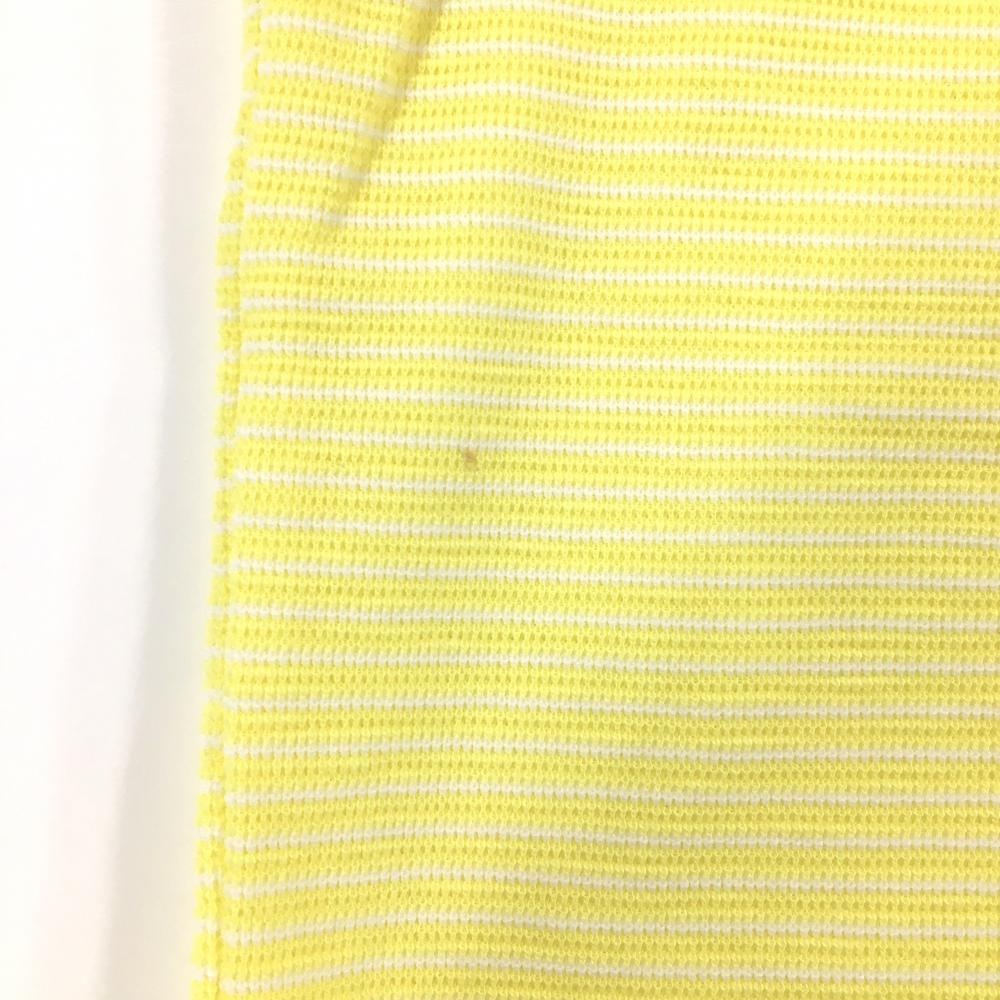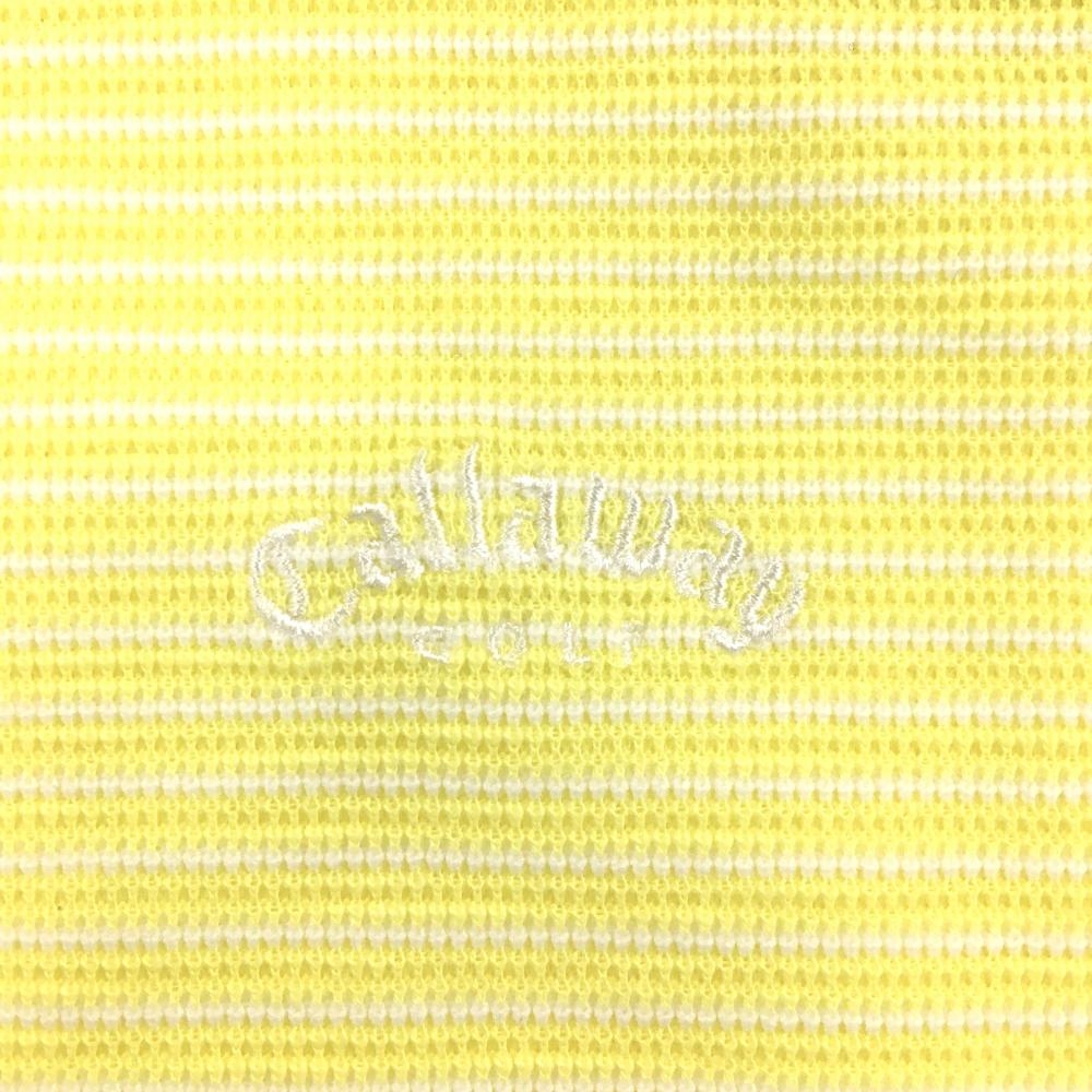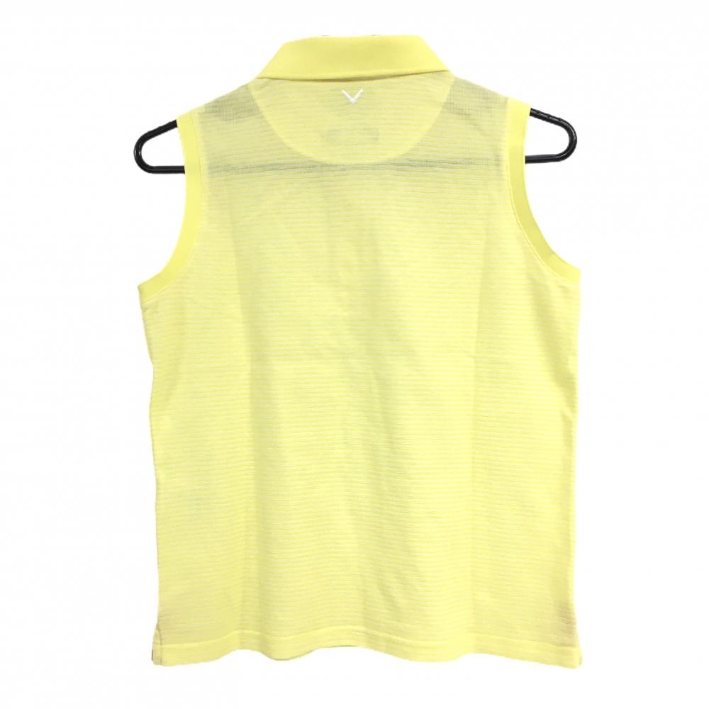 【美品】キャロウェイ ノースリーブポロシャツ イエロー×白 ボーダー ロゴ刺しゅう レディース L ゴルフウェア Callaway