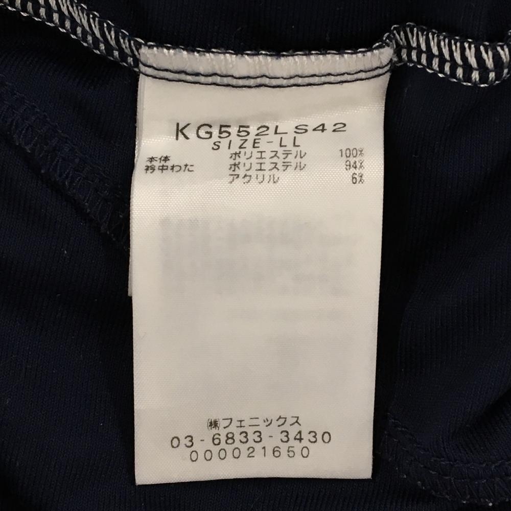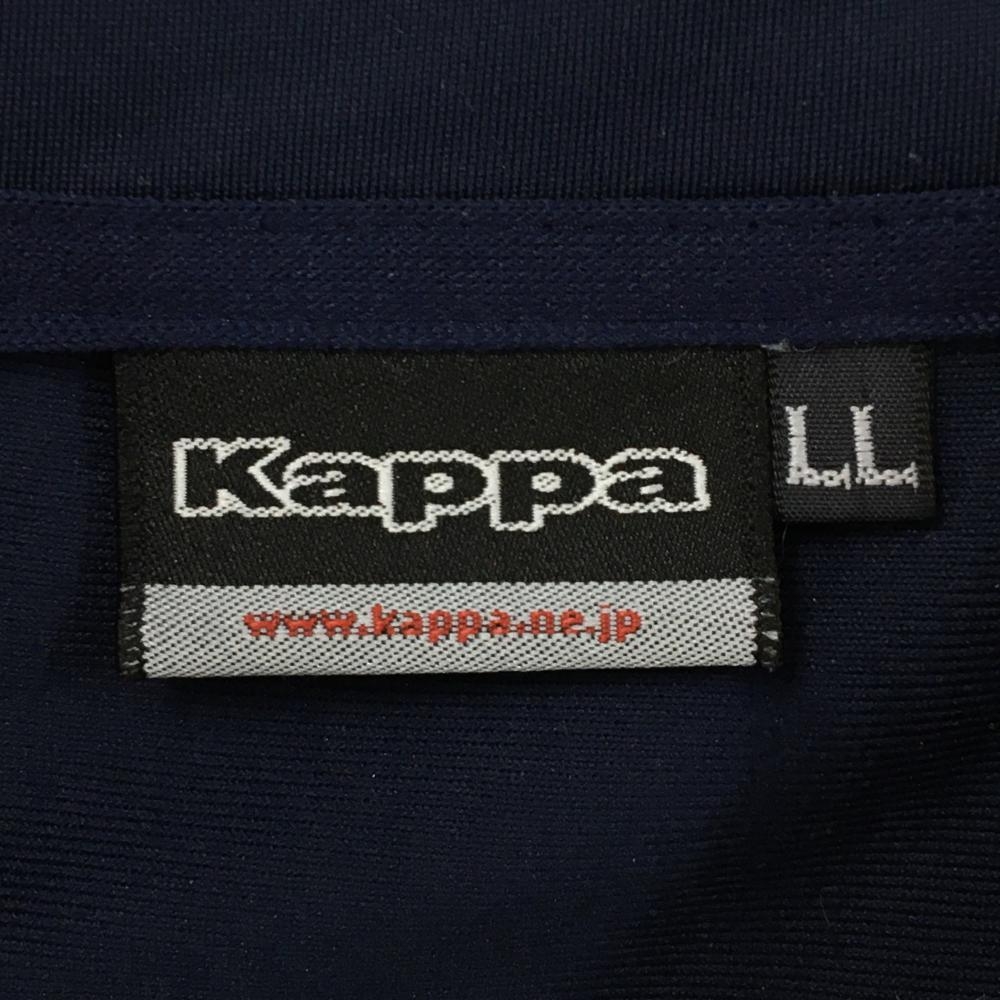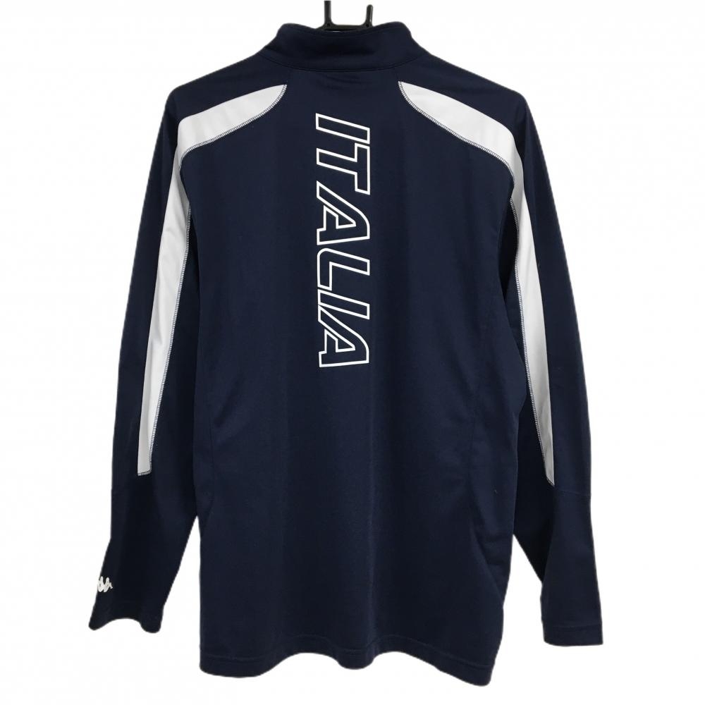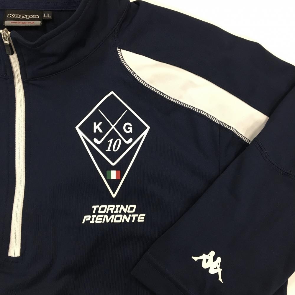 【美品】カッパ 長袖ハイネックシャツ ネイビー×白ハーフジップ 袖ロゴプリント メンズ LL ゴルフウェア Kappa