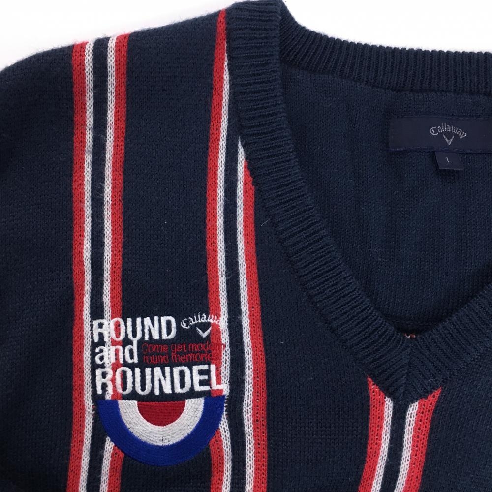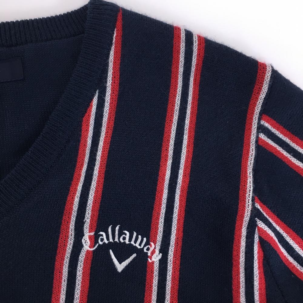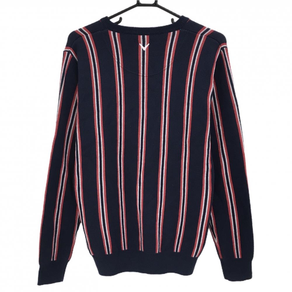 【美品】キャロウェイ セーター ネイビー×レッド ストライプ ウール混 ニット メンズ L ゴルフウェア Callaway