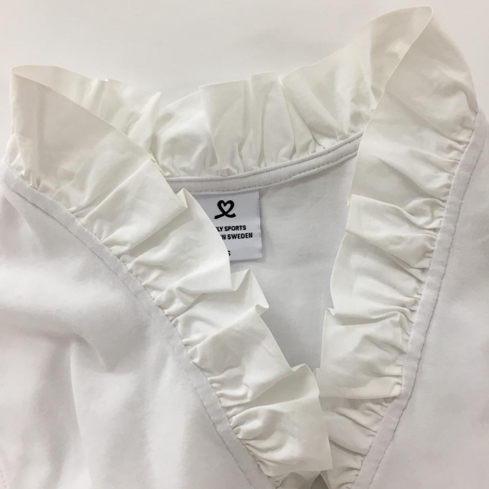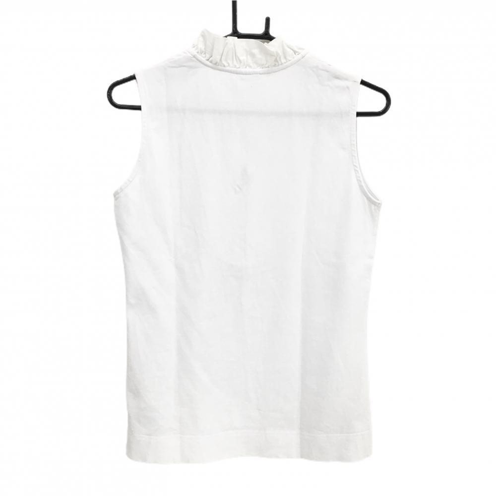 【美品】デイリースポーツ ノースリーブシャツ 白 ネックフリル レディース S ゴルフウェア DAILY SPORTS