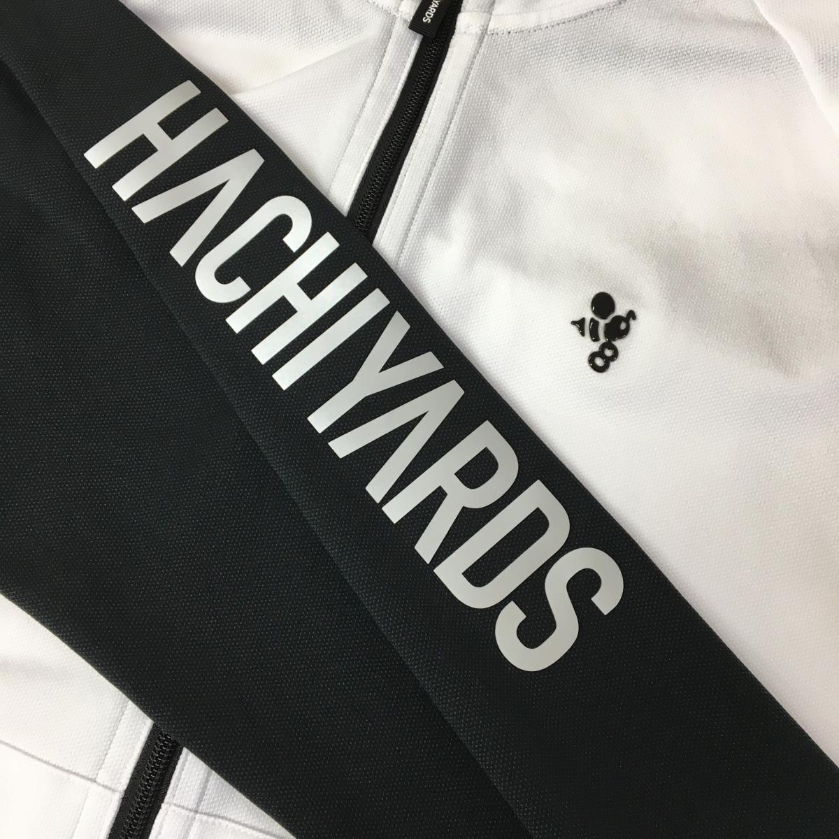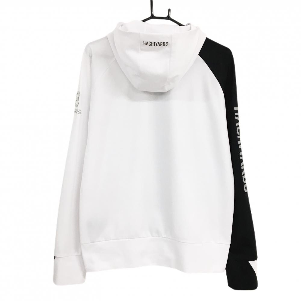 【美品】ハチヤーズ ジップパーカー 白 ロゴシルバー ジャケット メンズ XL ゴルフウェア 8YARDS
