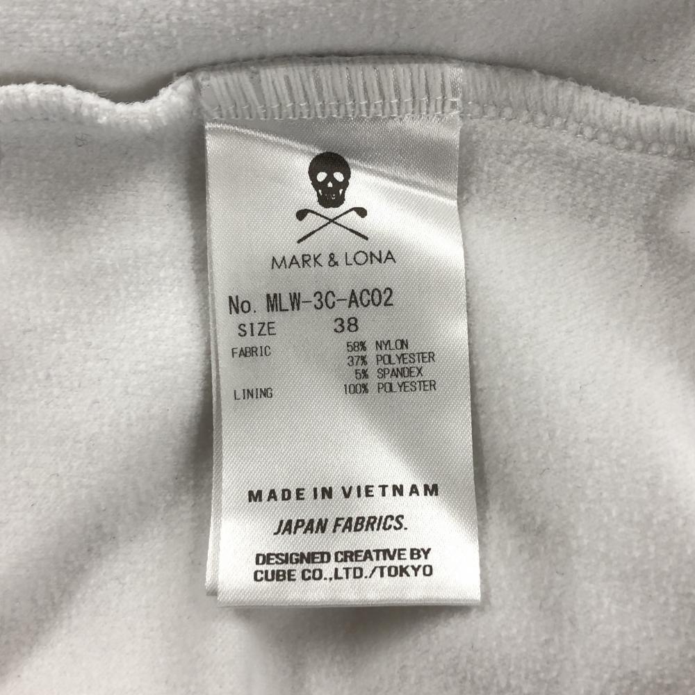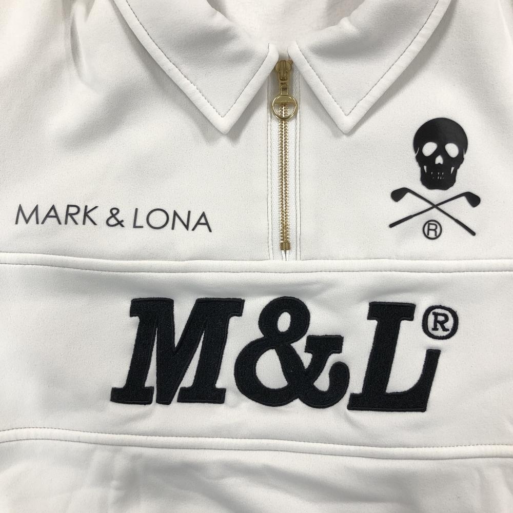 【超美品】マークアンドロナ 襟付き長袖シャツ 白×黒 裏微起毛 ハーフジップ スカル レディース 38(M) ゴルフウェア MARK&LONA