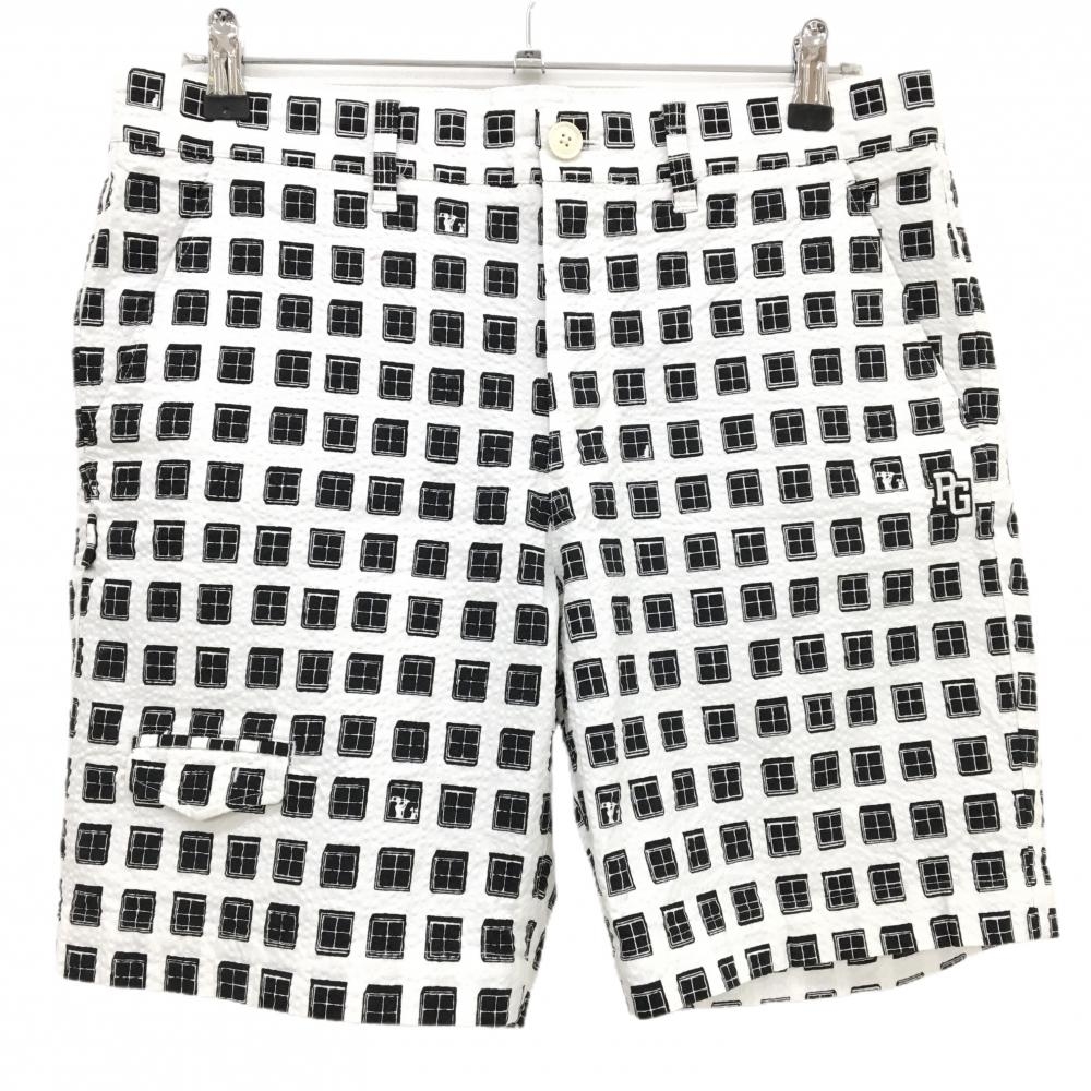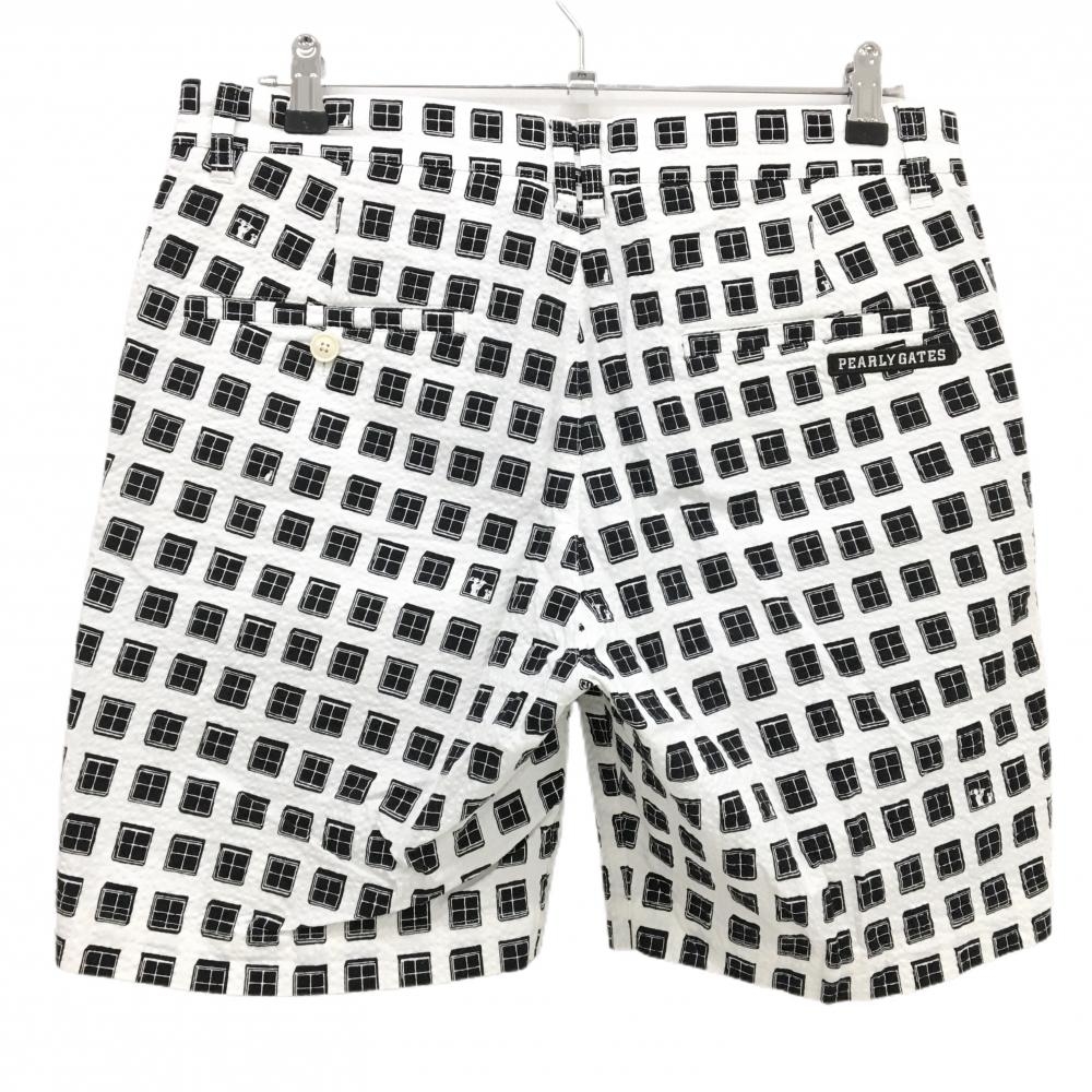 【超美品】パーリーゲイツ ハーフパンツ 白×ネイビー 総柄 サッカー調生地 ストレッチ メンズ 4(M) ゴルフウェア PEARLY GATES