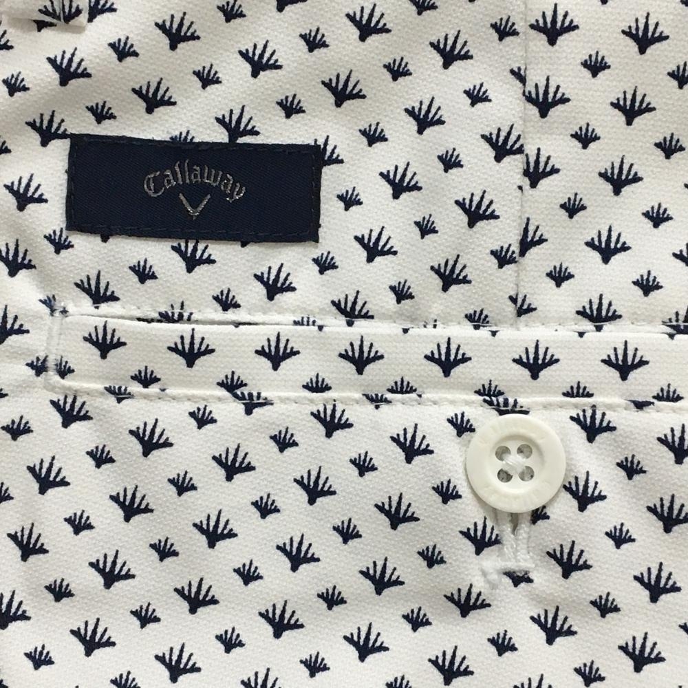 【美品】キャロウェイ ハーフパンツ 白×ネイビー 総柄 ストレッチ メンズ 3L ゴルフウェア 大きいサイズ Callaway