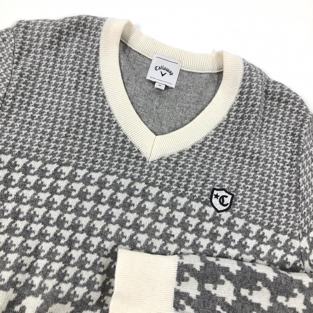 【超美品】キャロウェイ セーター グレー×白 千鳥格子 カシミヤ混 ニット メンズ M ゴルフウェア Callaway