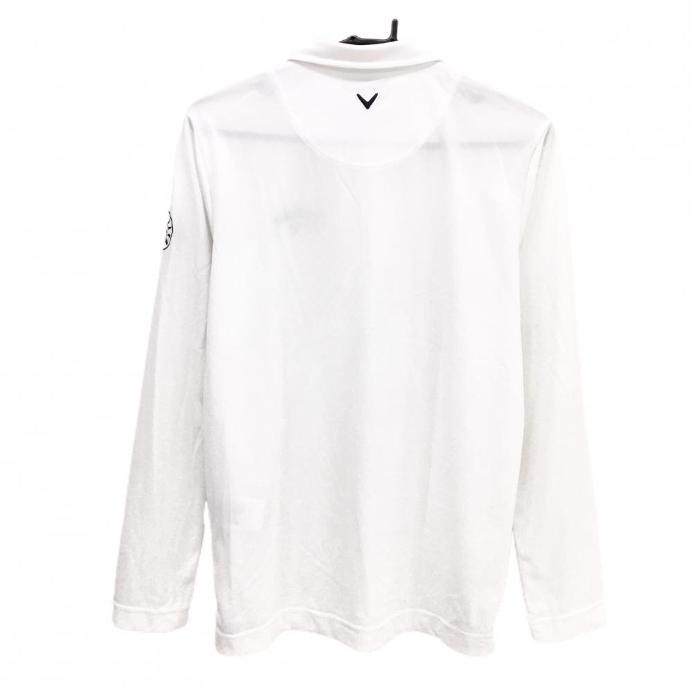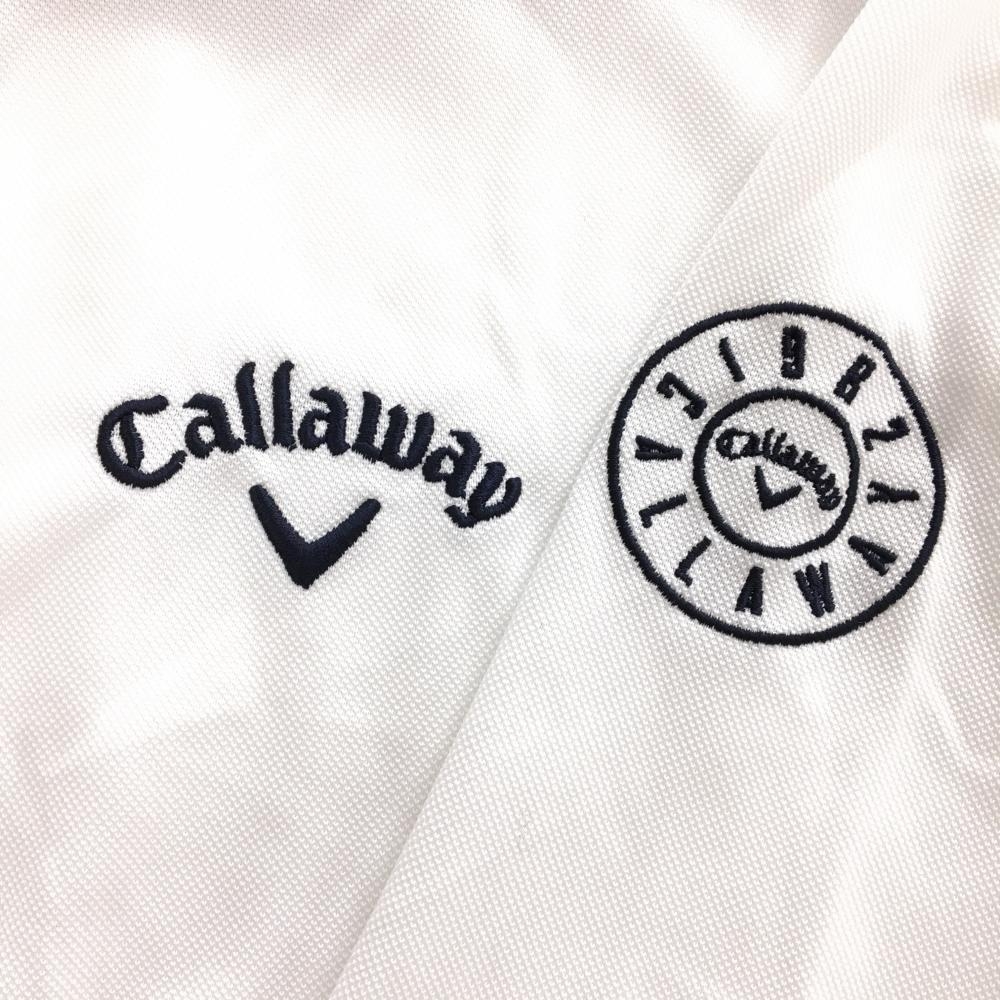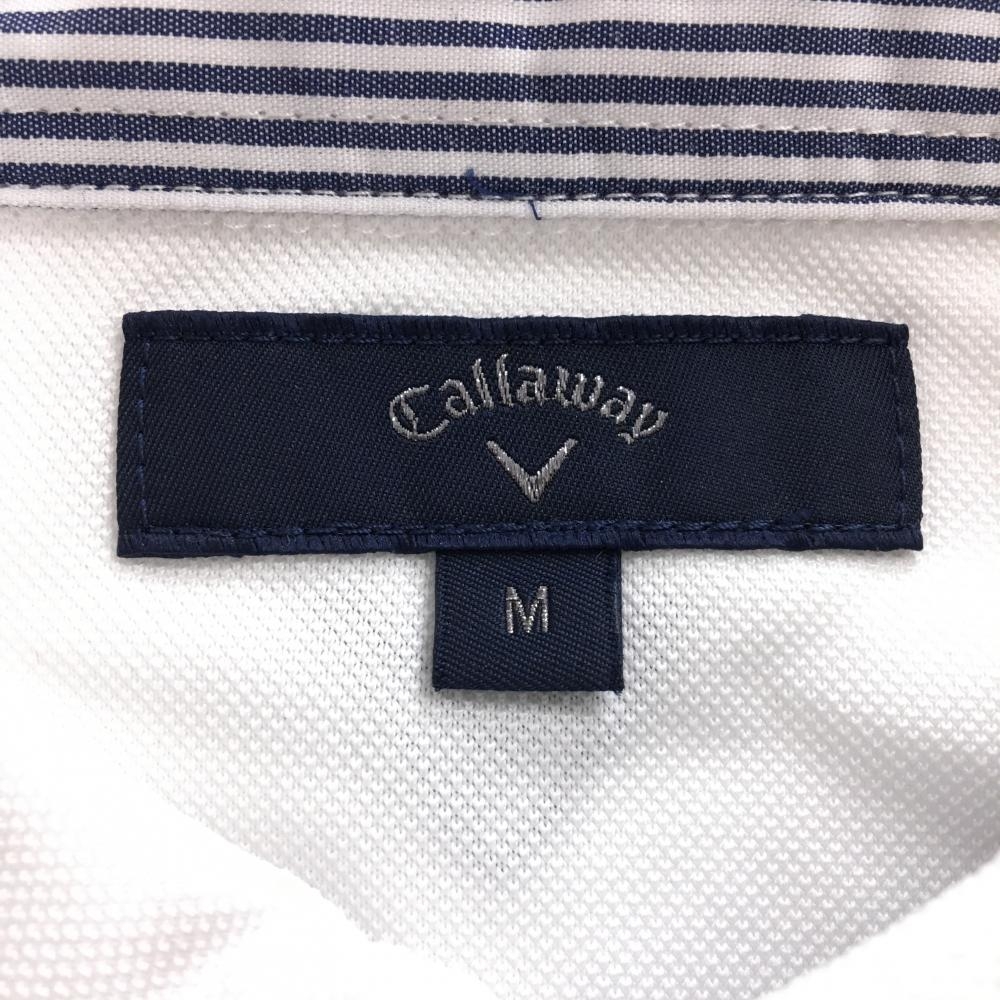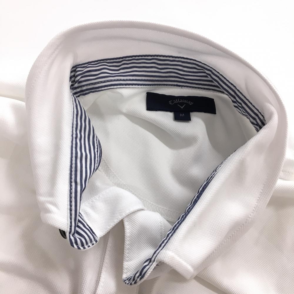 【美品】キャロウェイ 長袖ポロシャツ 白 ロゴネイビー ボタンダウン メンズ M ゴルフウェア Callaway