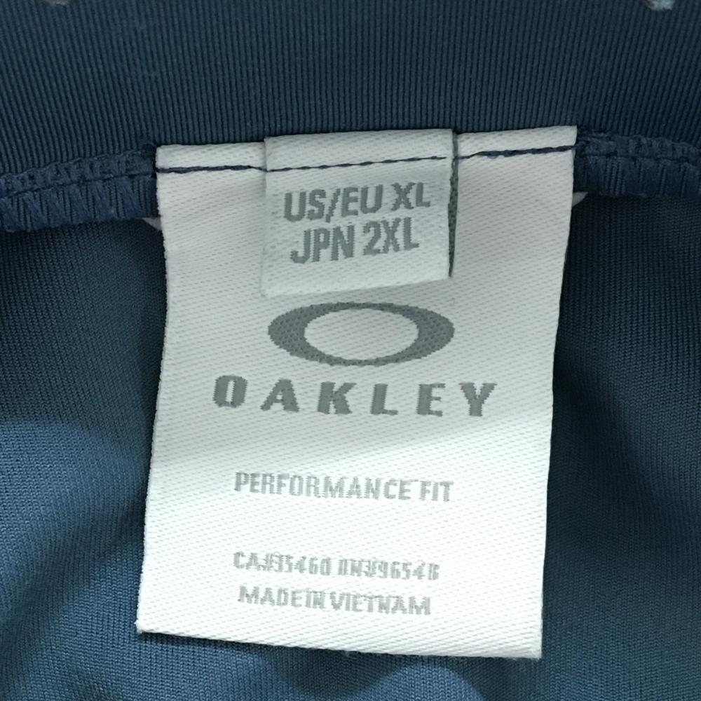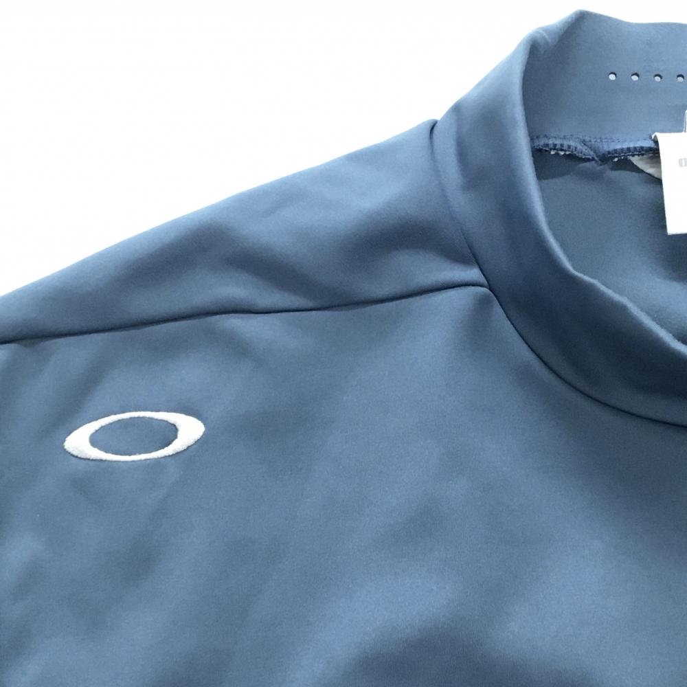 【美品】オークリー 長袖ハイネックシャツ スモーキーブルー 吸湿性 発散性 速乾性 ストレッチ メンズ 2XL ゴルフウェア Oakley