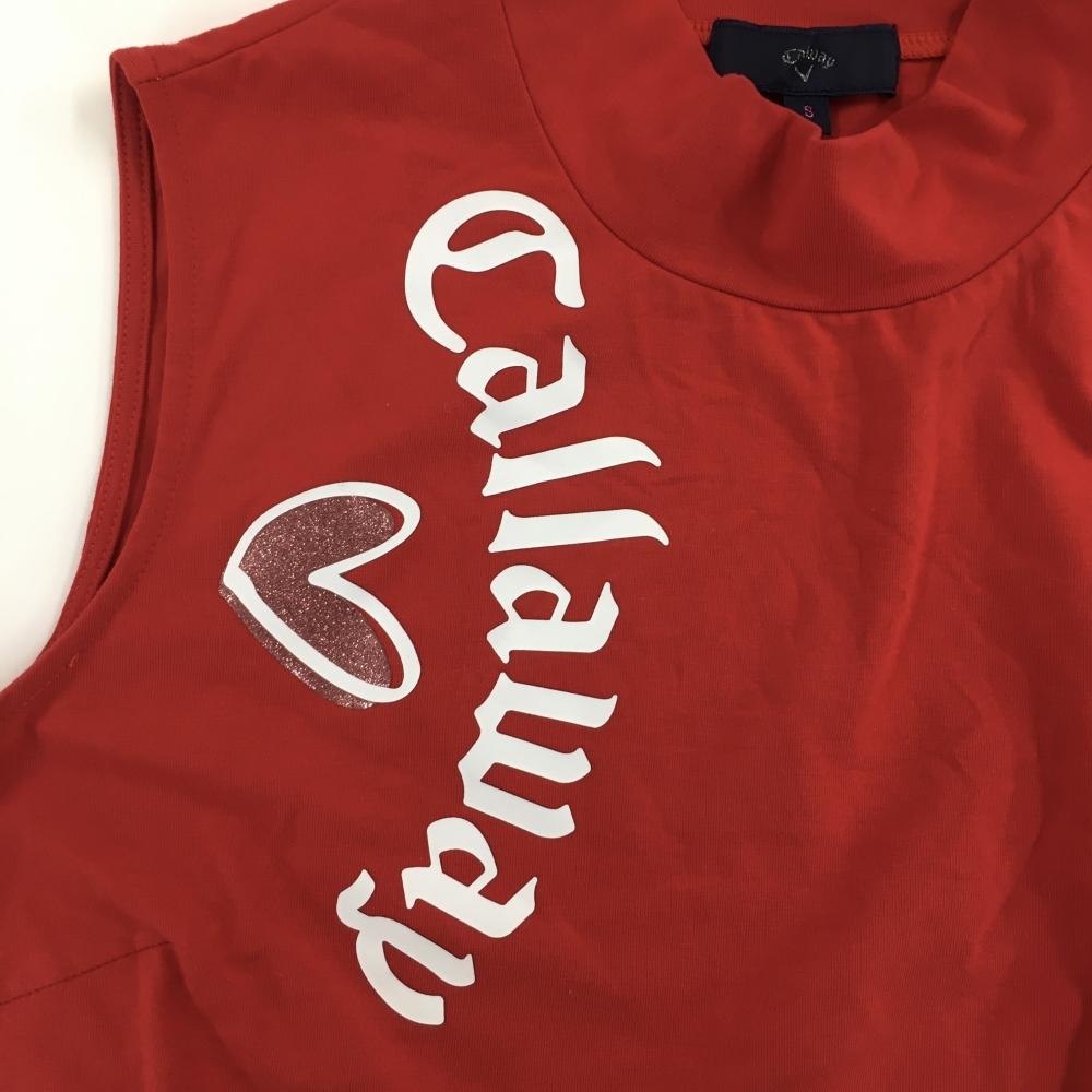 【超美品】キャロウェイ ノースリーブハイネックシャツ レッド×白 ビッグロゴ ラメハート レディース S ゴルフウェア Callaway