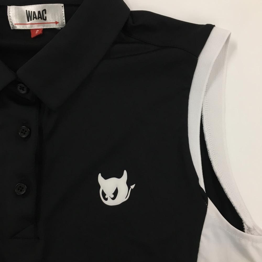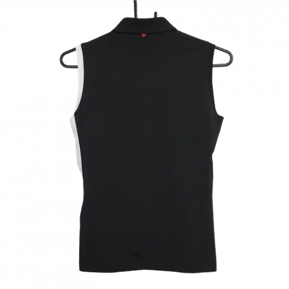 【超美品】ワック ノースリーブポロシャツ 黒×白 バイカラー サイドロゴ レディース 2(M) ゴルフウェア WAAC