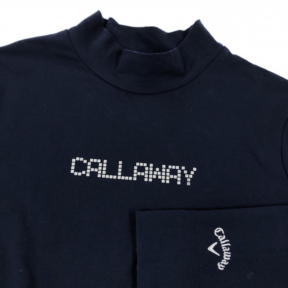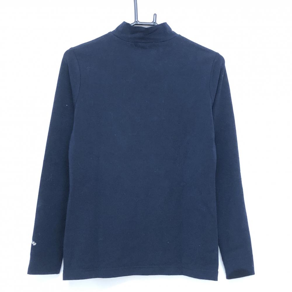 【美品】キャロウェイ 長袖ハイネックシャツ ネイビー フロントロゴシルバー レディース M ゴルフウェア 2024年モデル Callaway
