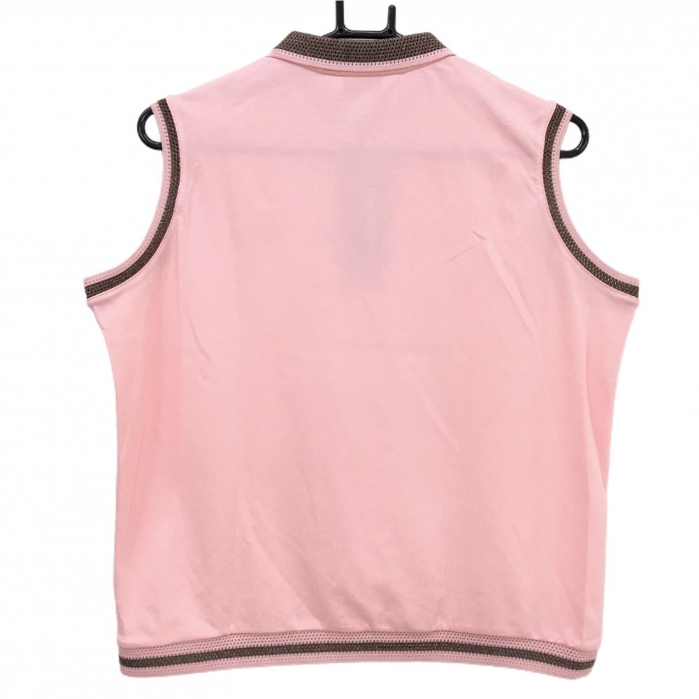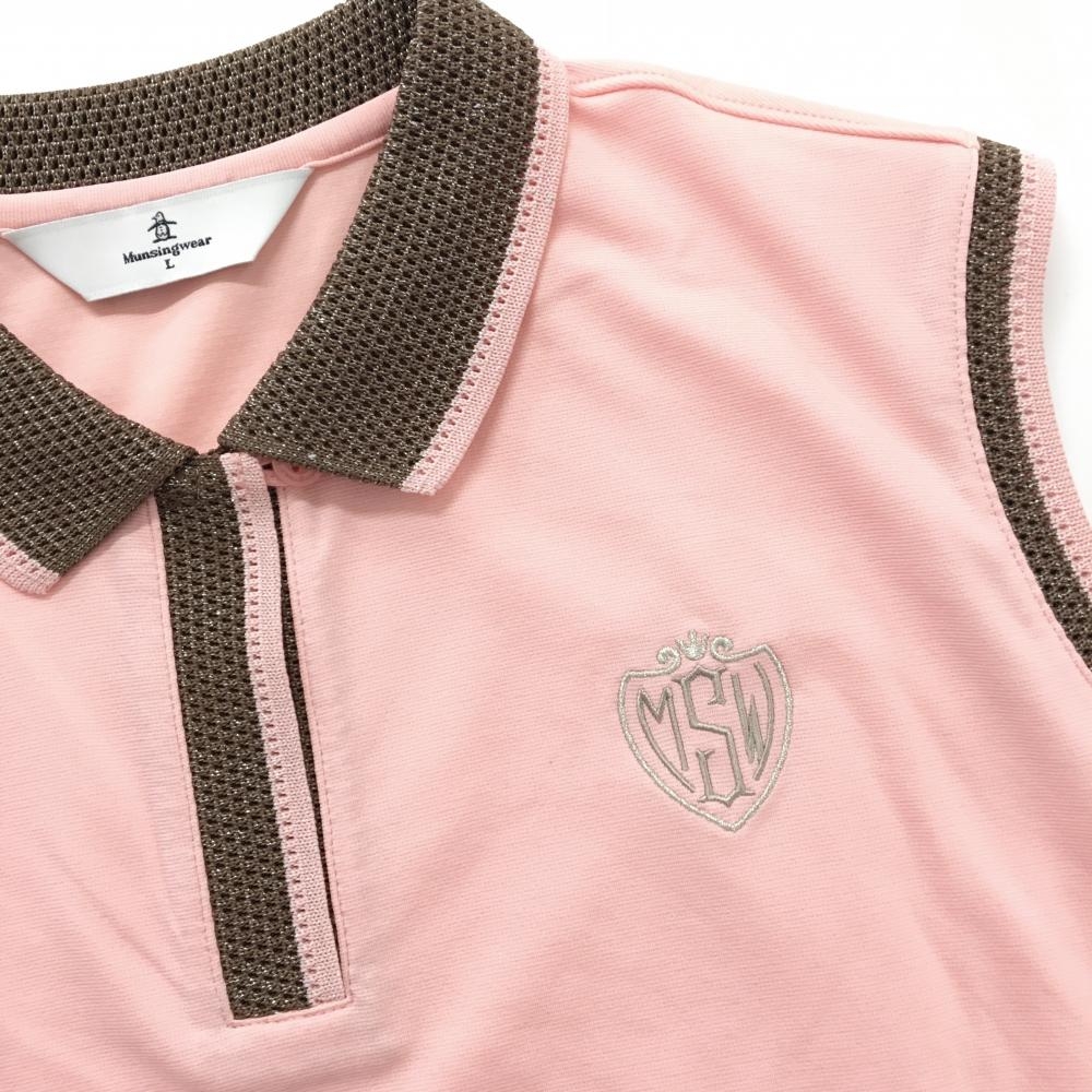 【超美品】マンシングウェア ノースリーブポロシャツ ピンク×ブラウン 一部ラメ レディース L ゴルフウェア 2024年モデル Munsingwear